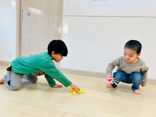 完成すると、夢中でコマを回す様子が見られましたよ☆