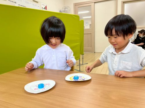 年中さんは、コマの製作を行っています。