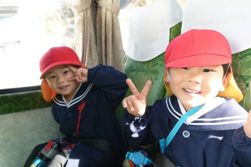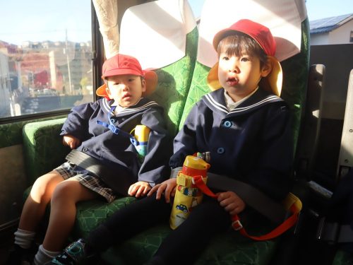 友だちとバスで園外で活動することが初めてのため、約束事をしっかりと確認してからいざバスへ。