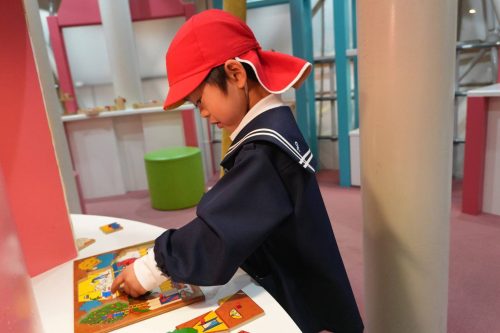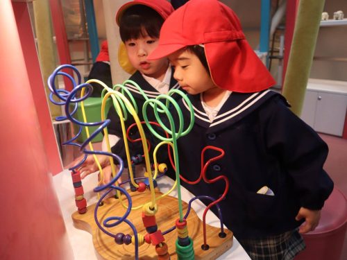 トリックアートや絵本、遊具などに目を輝かせ、思う存分に楽しむりす組さん。