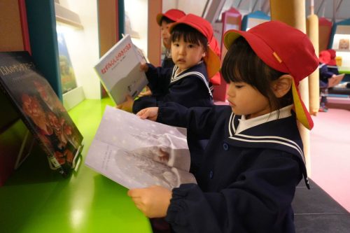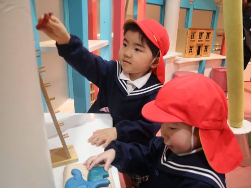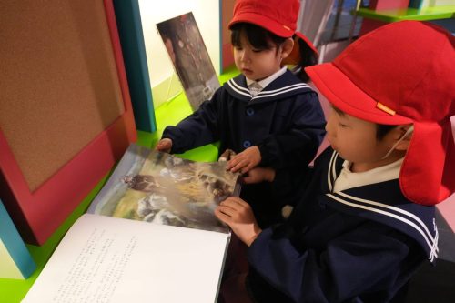 トリックアートや絵本、遊具などに目を輝かせ、思う存分に楽しむりす組さん。