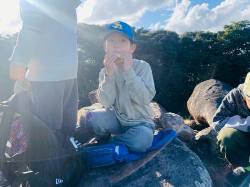 放課後等デイサービスでは、上山岡登山を行いました! 頂上で食べるおやつを楽しみに、足元に気を付けながら、岩や落ち葉がたくさんある斜面を登ります。 頂上に着くと、「僕の家見えたー!」、「あれ小学校じゃない?」と、普段見ることのできない高い場所からの眺めを楽しみました☆ 頑張って登った後に食べるおやつは、いつもよりも美味しく感じたかもしれませんね。 登山中に見つけた葉っぱやどんぐりなどをお土産としてお家に持って帰りました♪