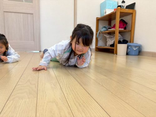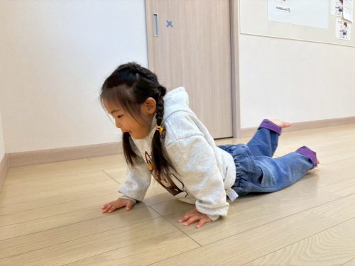 今までに何回も練習してきたクマ歩きとワニ歩きはお手のもの!