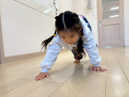 今までに何回も練習してきたクマ歩きとワニ歩きはお手のもの!