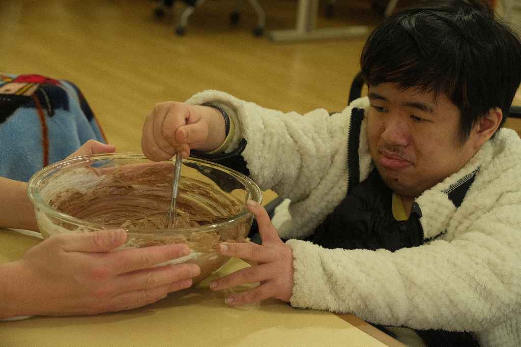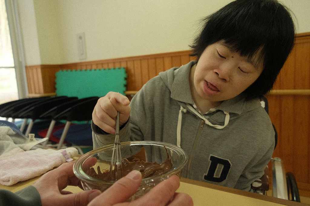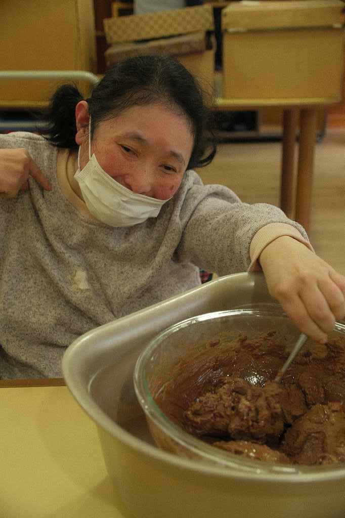 今回のカフェ活動は、バレンタインデーにちなんでチョコ生クリームを作りました♪