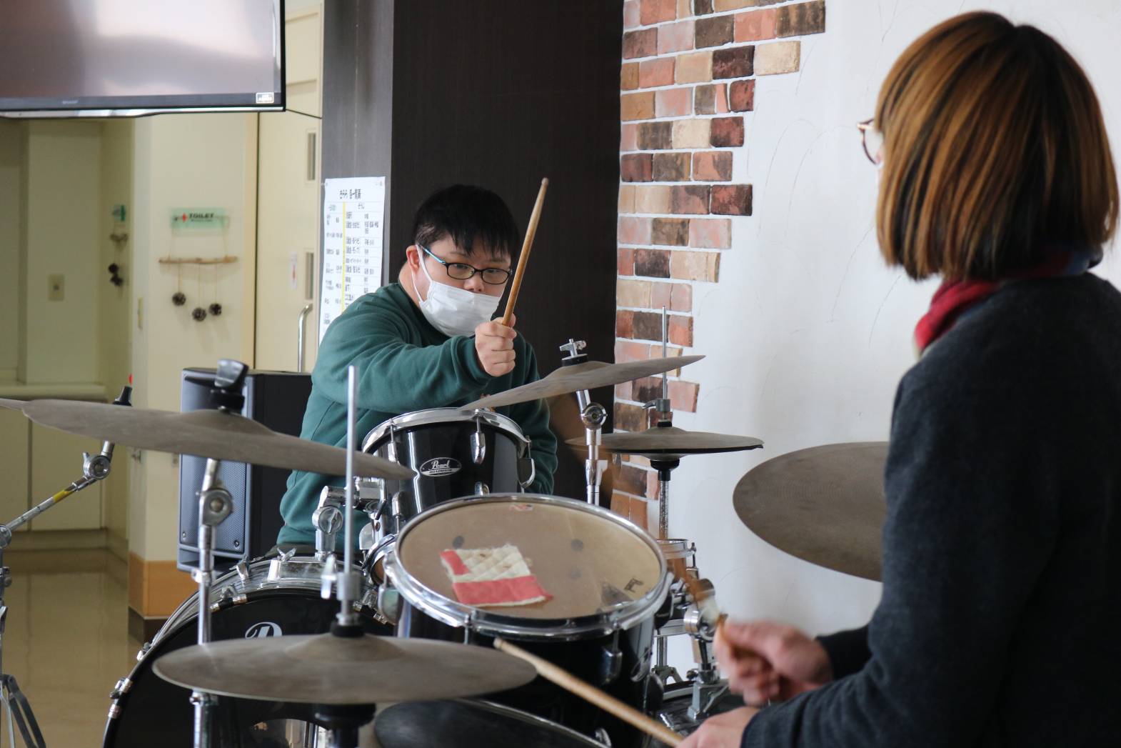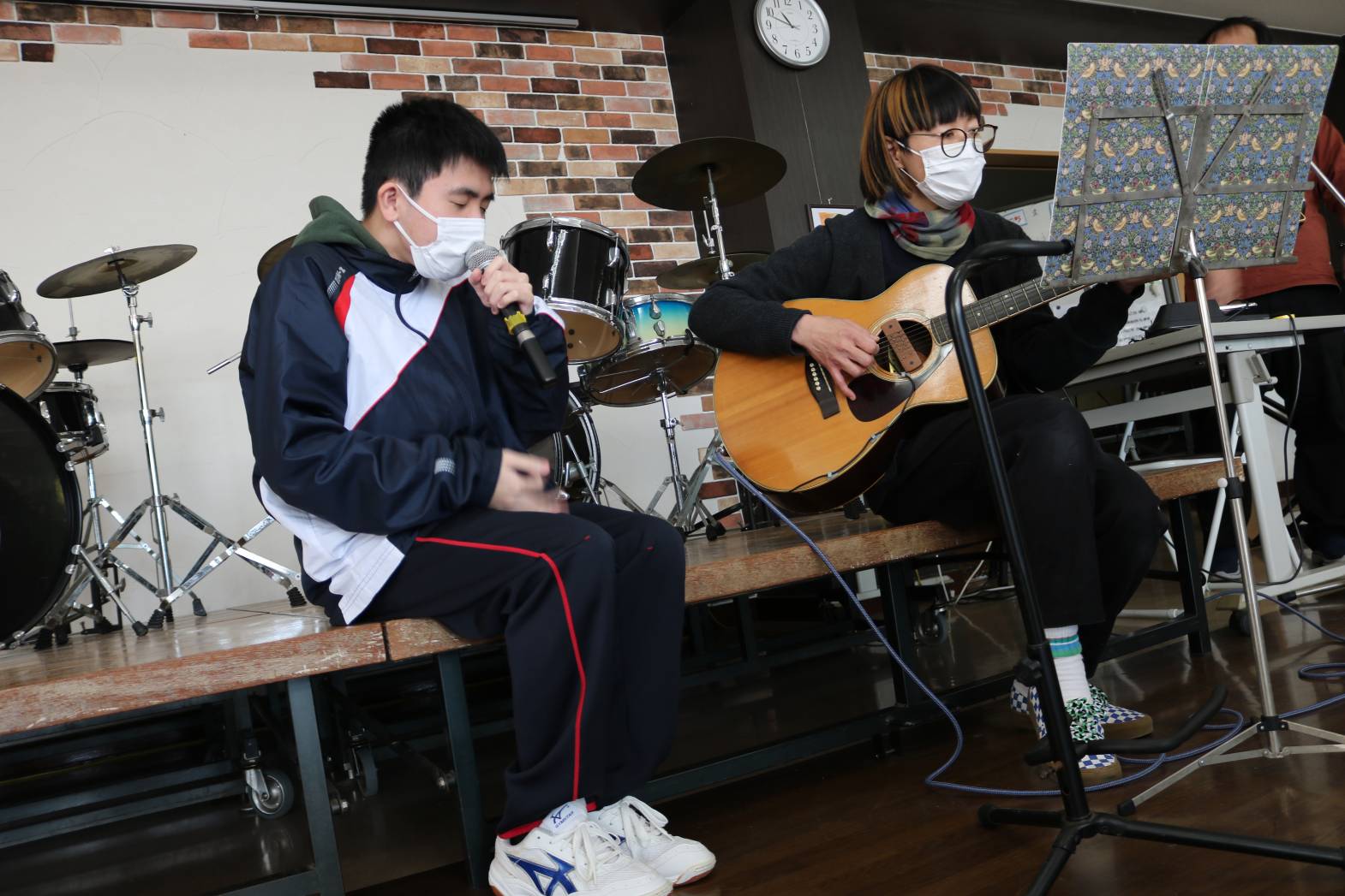 大好きな職員との音楽発表、ノリノリです