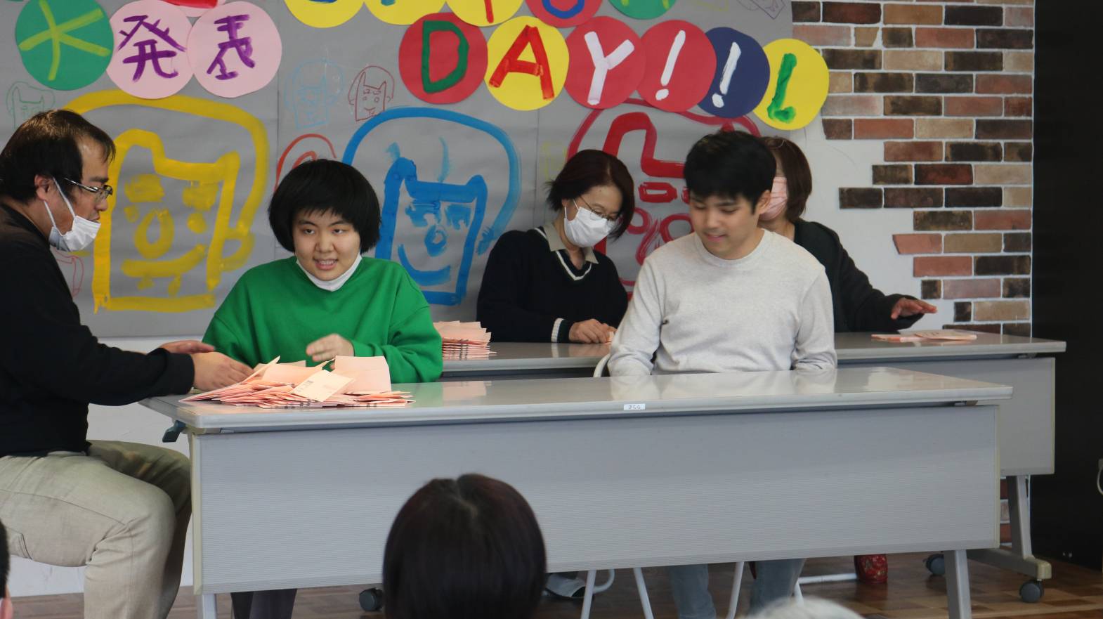 封筒作業発表では、ご家族の方との競争を行いました。
