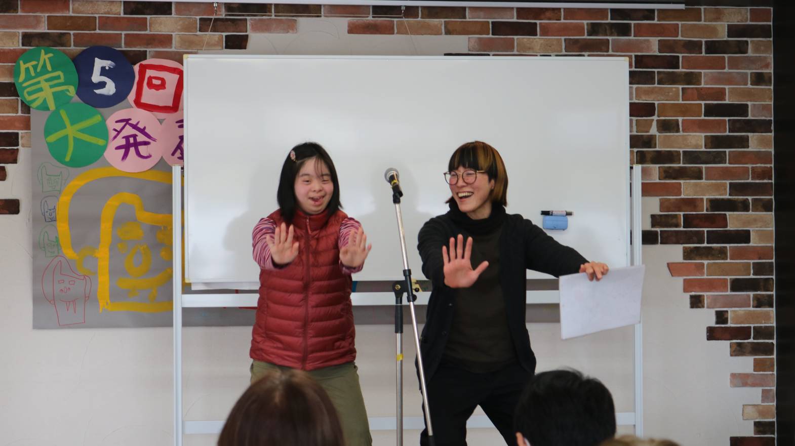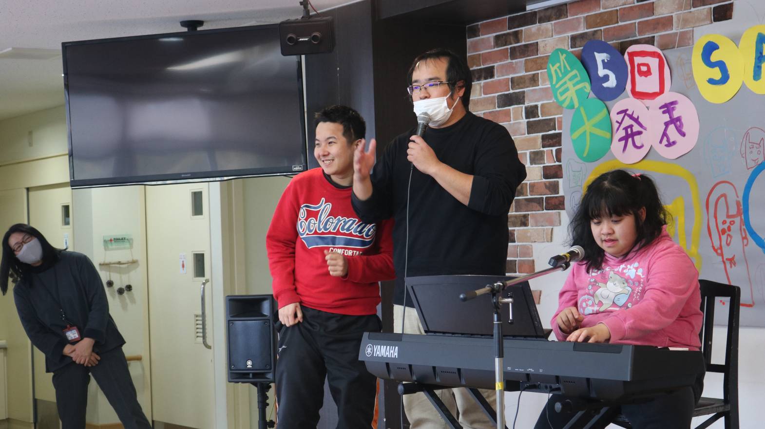 大好きな職員との音楽発表、ノリノリです