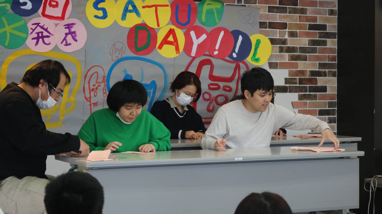 封筒作業発表では、ご家族の方との競争を行いました。