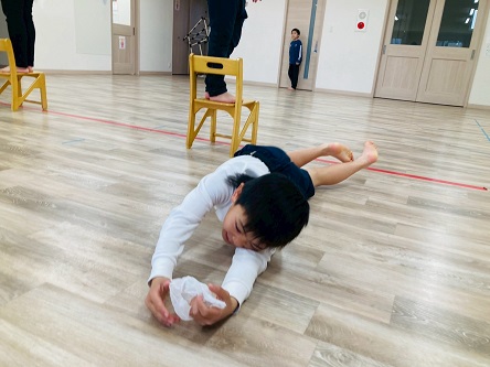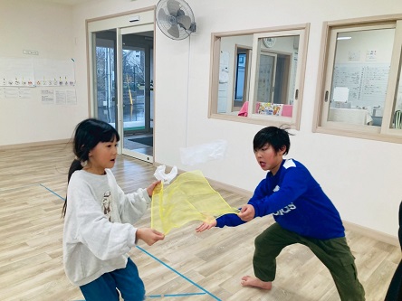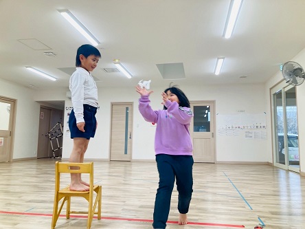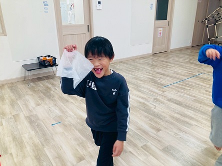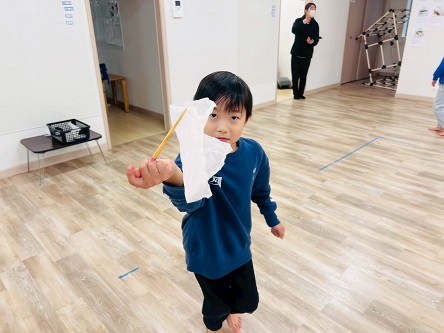 放課後等デイサービスでは、ティッシュキャッチを行いました。 初めは、お玉や箸、オーガンジーなどを使用して上から降ってきたティッシュをキャッチしました。 「おっと、あぶない!」と慎重にキャッチする子どもたち! 後半は、スタート位置に立ち、ゴールの線で落としたティッシュを走ってキャッチしました! ティッシュが丸まっていると落ちるスピードが速くなってしまうため、落とし方などもお友だちと話し合いながら挑戦する姿が見られましたよ! 床に落ちる直前でのスライディングキャッチに歓声が上がっていました♪