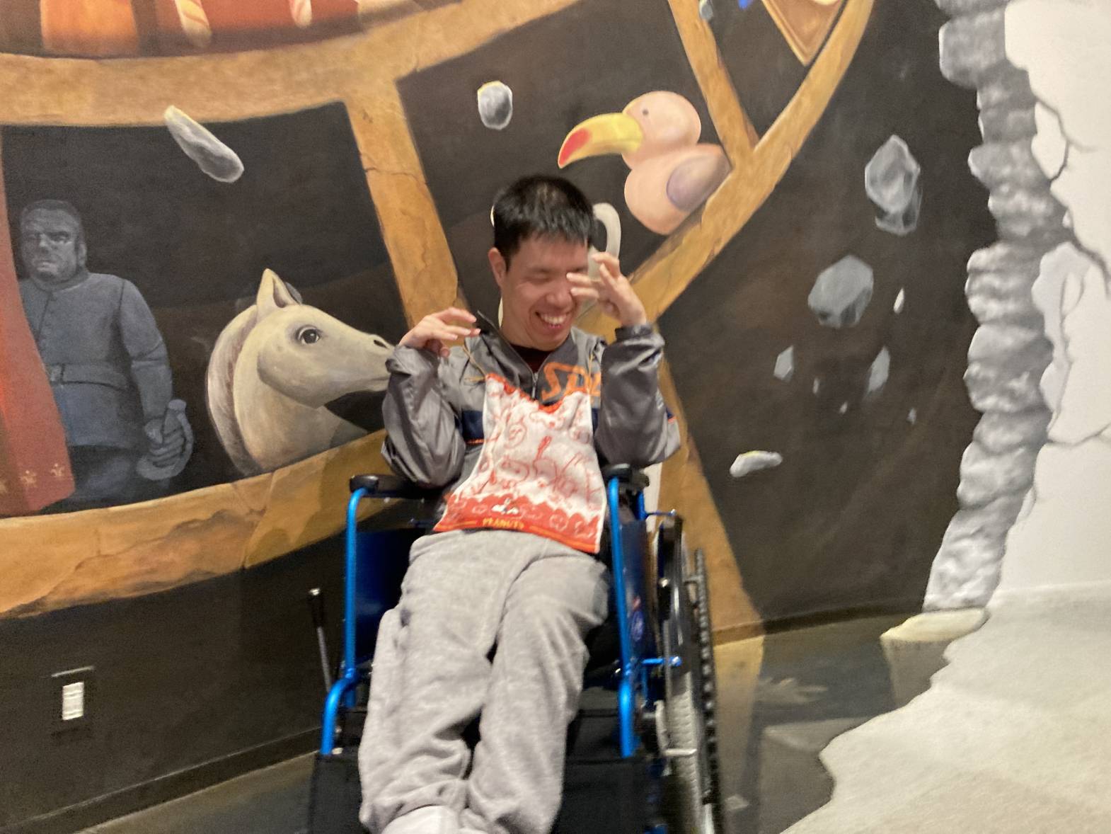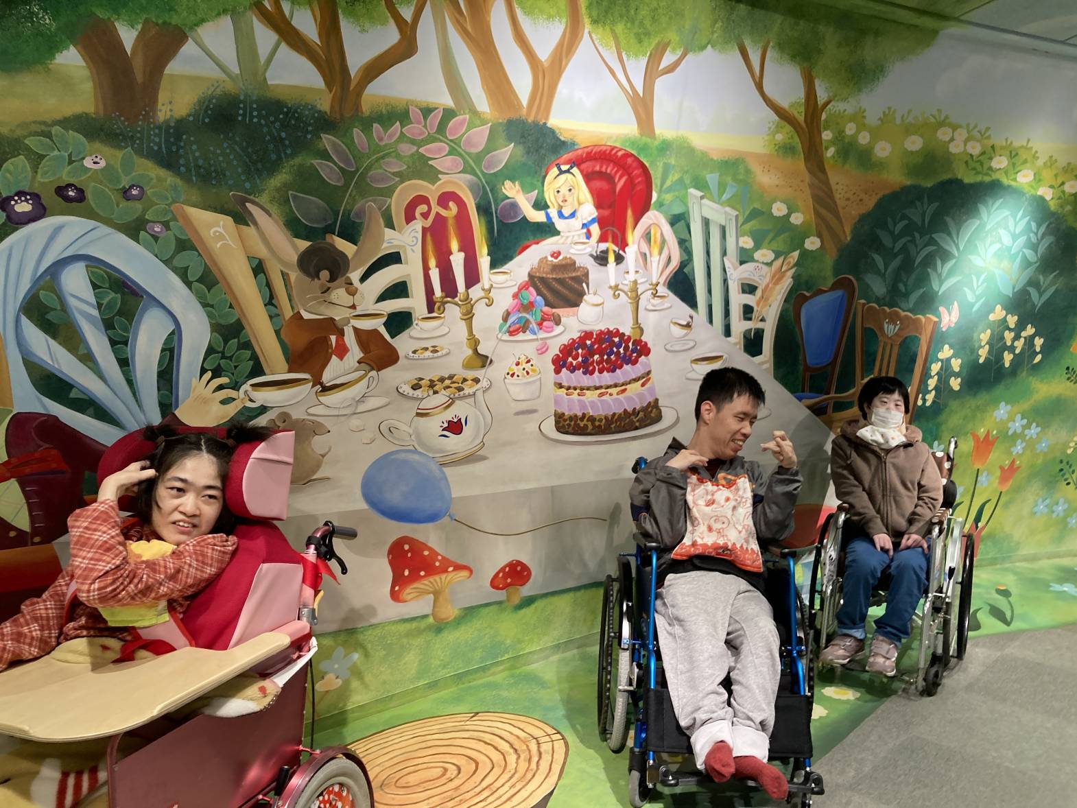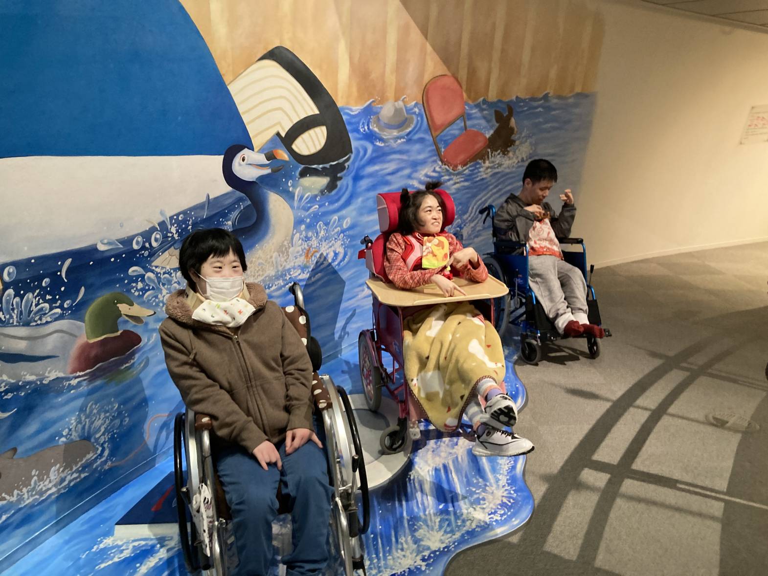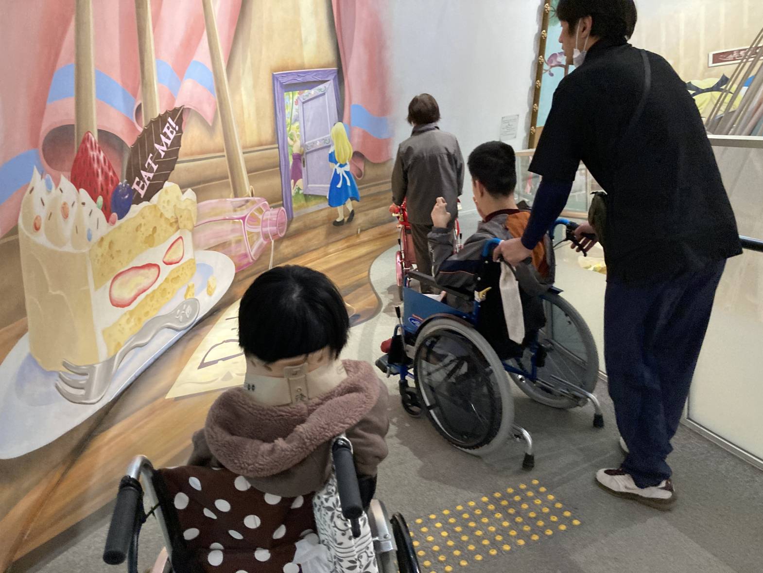 今日は3班目がメルヘン館外出を行いました! 巨大なトリックアートは圧巻ですね!大きなケーキ、とってもおいしそうですね! 動きに連動するゲームもあり、とっても楽しむことが出来ました! 今回のメルヘン館外出もたくさん楽しむことが出来ました。 素敵なトリックアートに、ゲームなどとっても楽しい時間を過ごすことが出来ました。 また次回の外出活動も楽しみにしておいてくださいね!