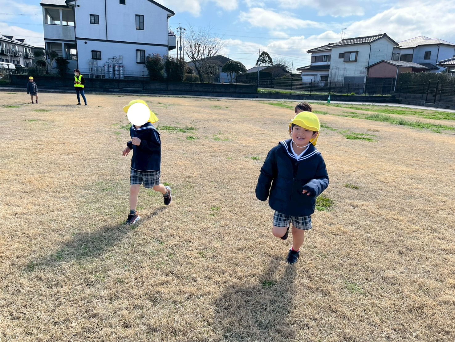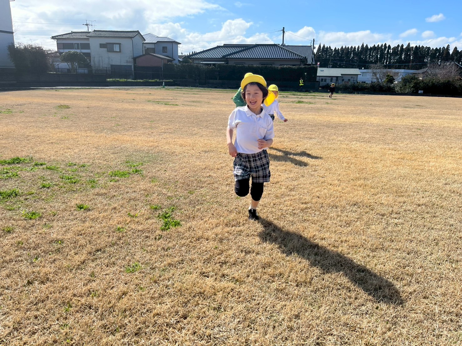 芝生に着くと、まず、子ども達が大好きなマラソンを行いましたよ!