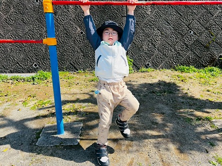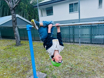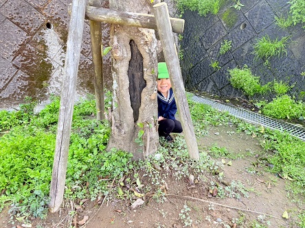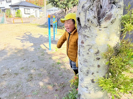 とら・ぞうグループでは、戸外活動で公園に行きました! 公園に着くと、かくれんぼや遊具遊びで元気いっぱいに身体を動かす子どもたち。 かくれんぼでは木の後ろやベンチに隠れ、見つからないように身体を隠す様子が見られました☆ また、遊具の上から覗いてみたり、アスレチックネットやクライミング遊具を登ったりする姿がありましたよ! 「次は高い遊具で遊びた~い!」と教えてくれた、子どもたちでした♪