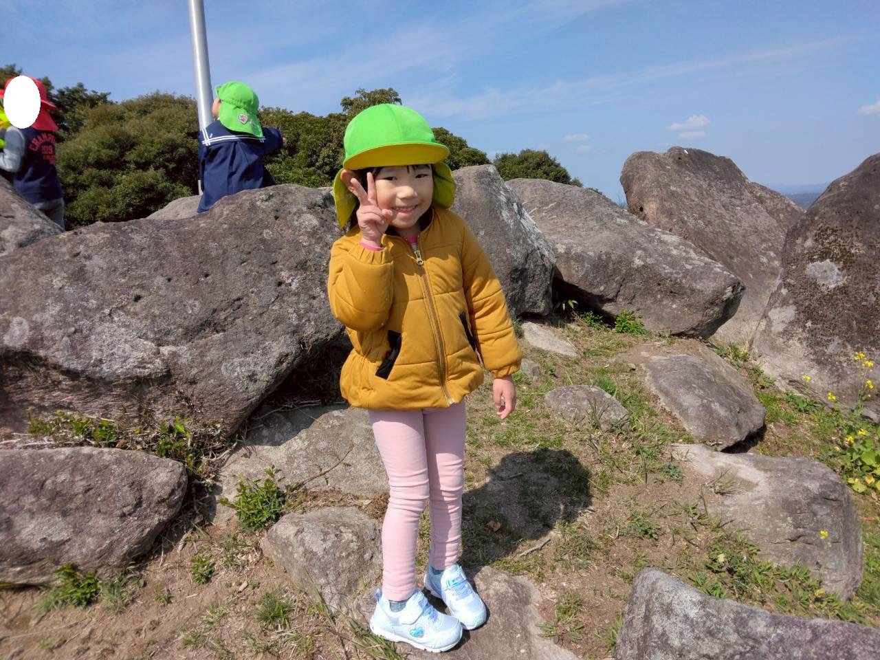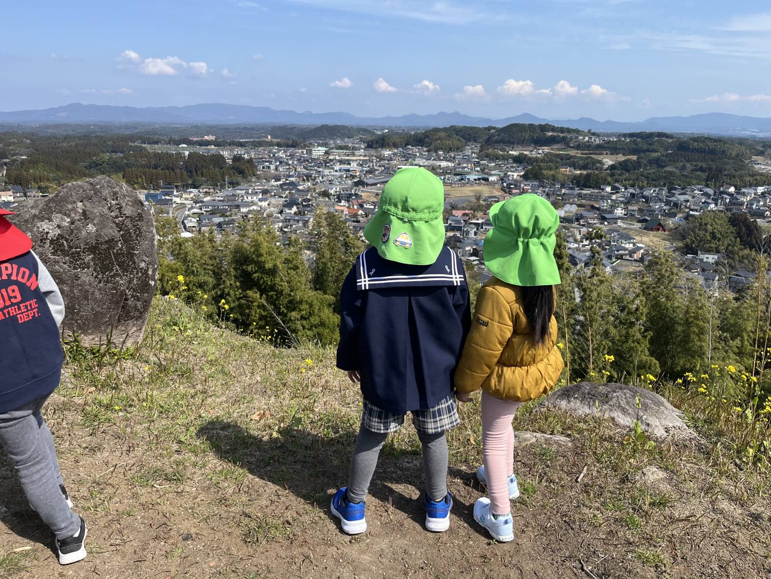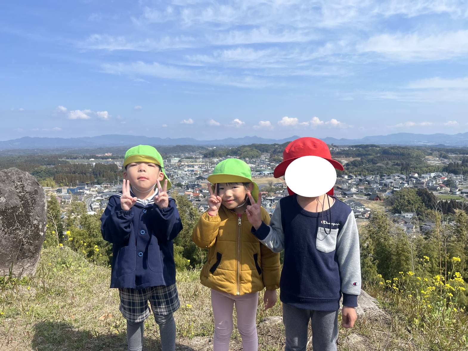 頂上に着くと、「あれは、いつも行く公園だ!」「めっちゃ景色きれい!」と頂上からの景色を観ながら達成感を感じる姿が見られました☆