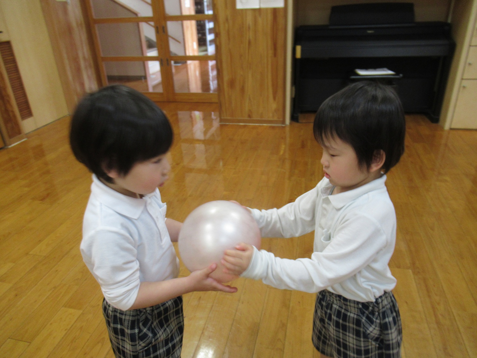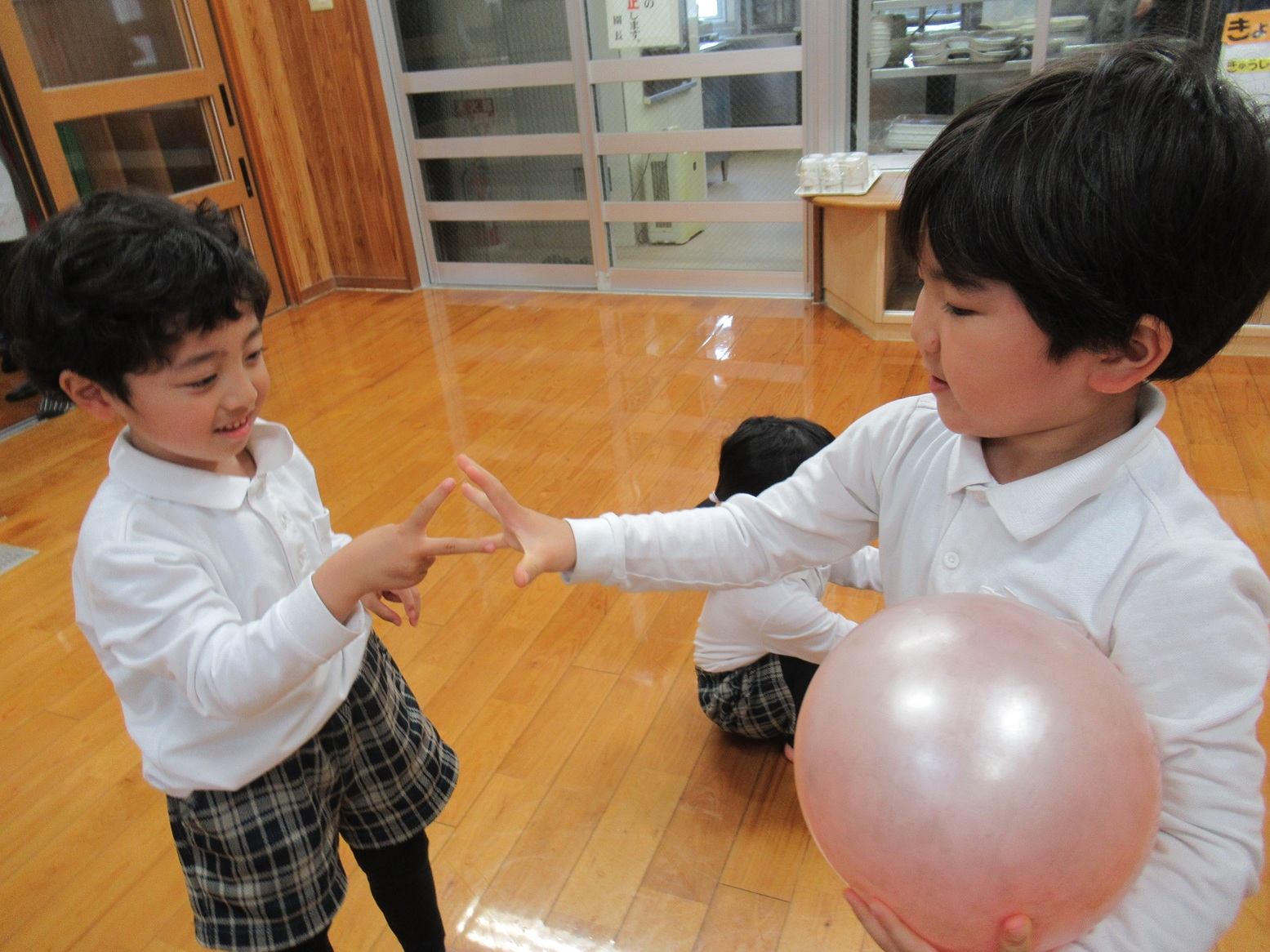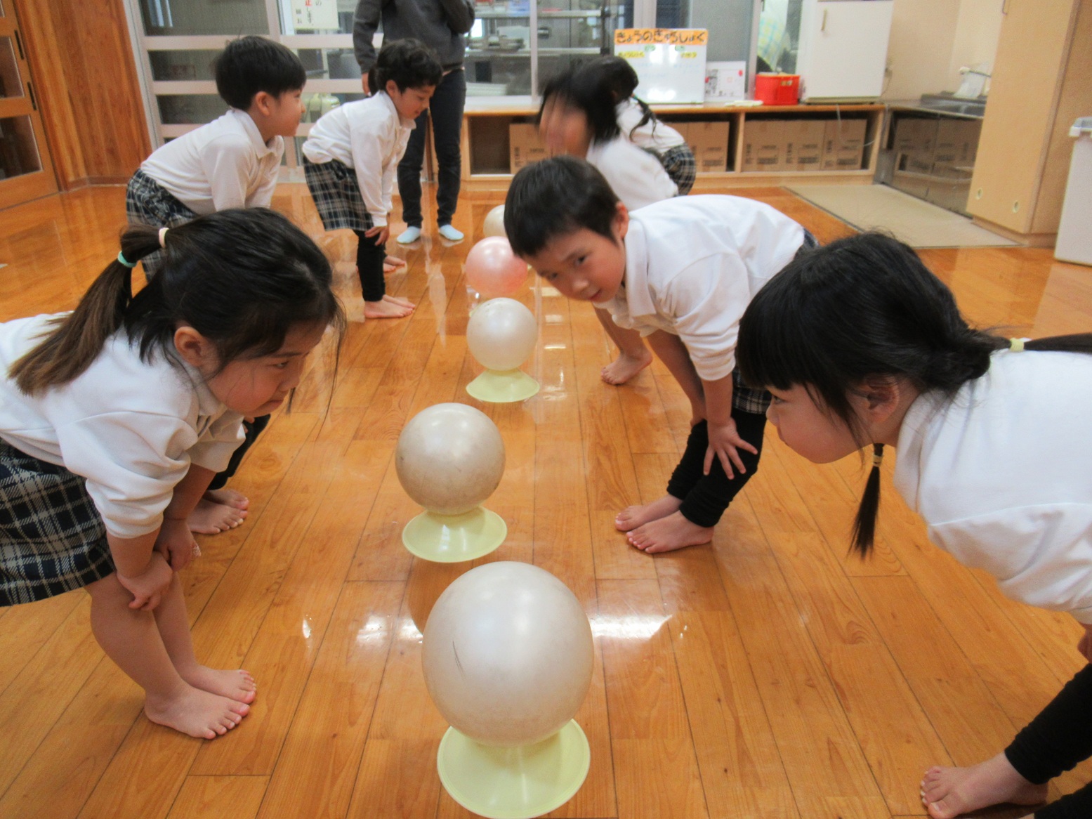 今回したのはボール取りゲーム。「ボール!」の掛け声で先に取れたら勝ちです!