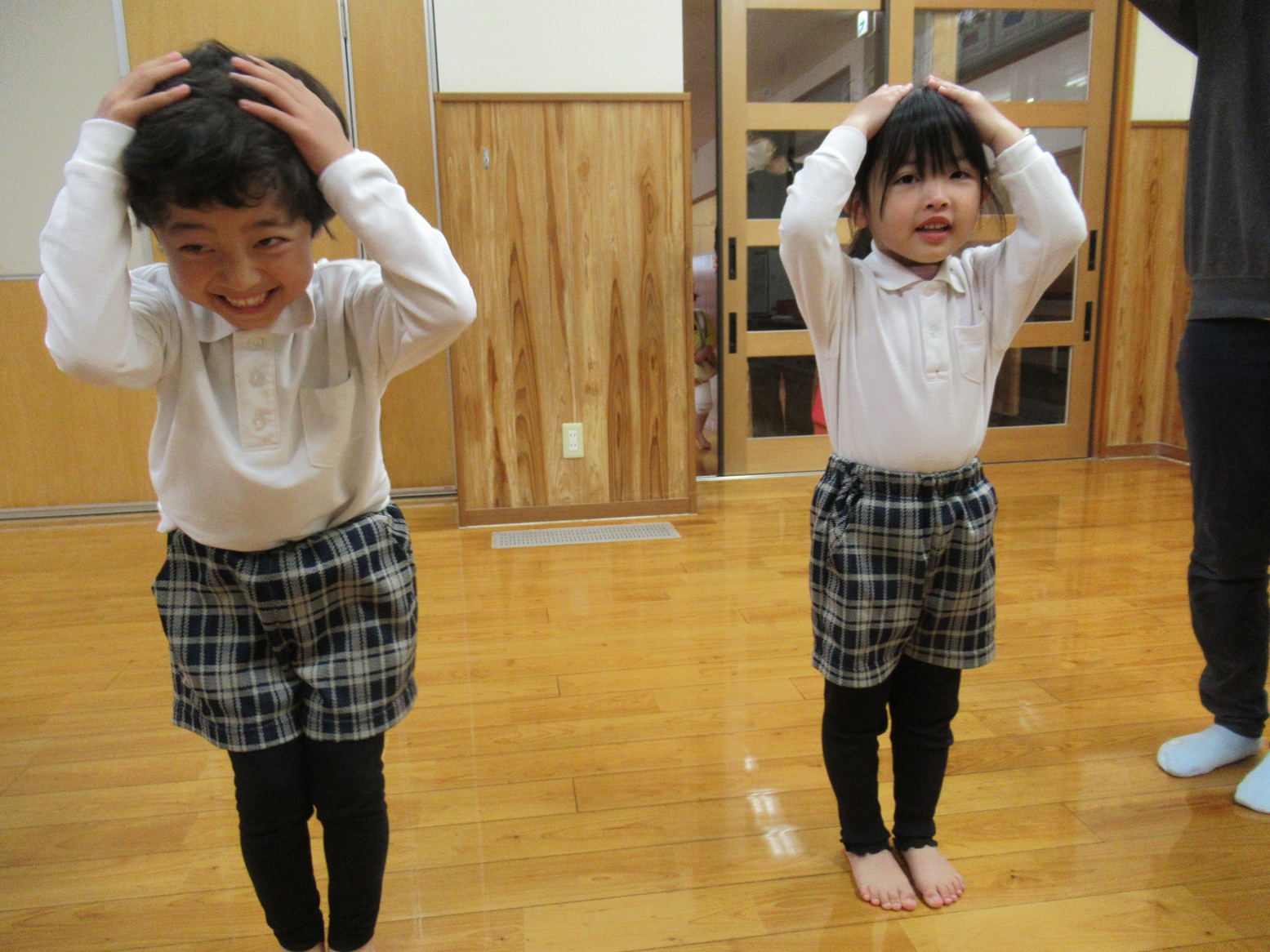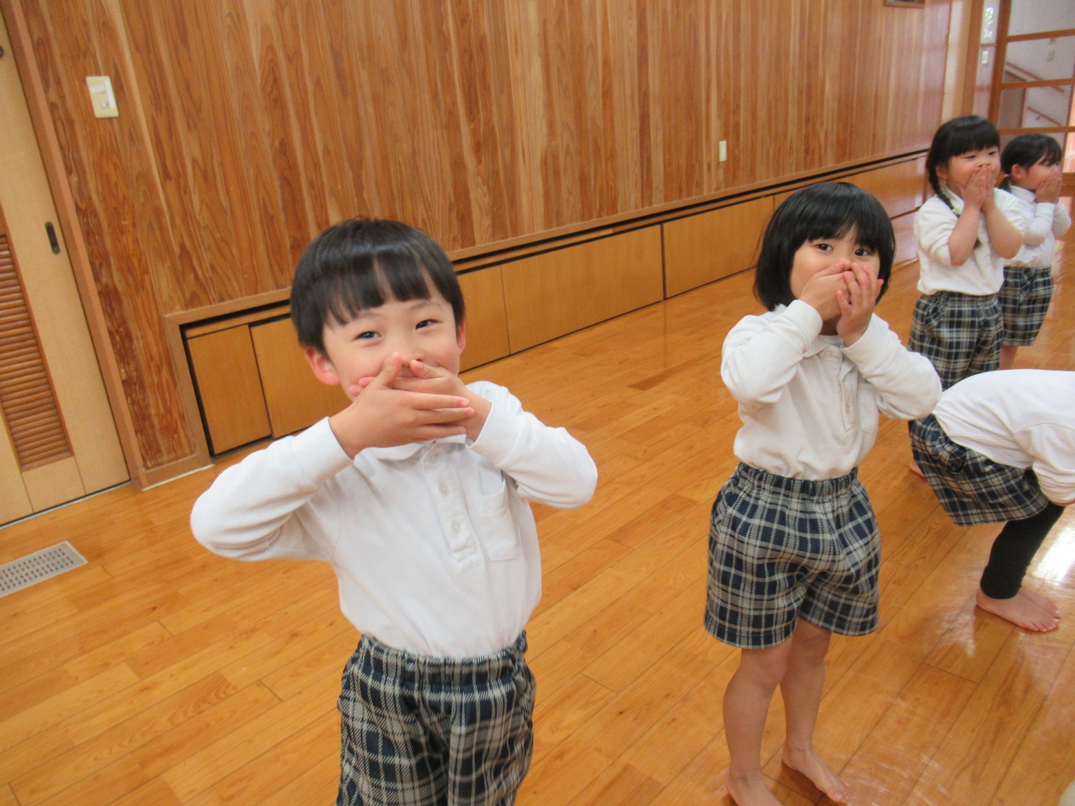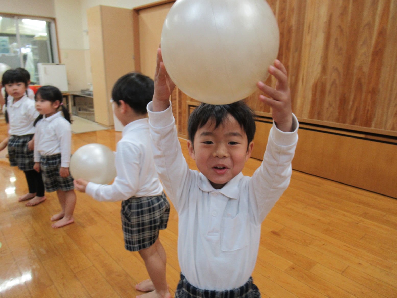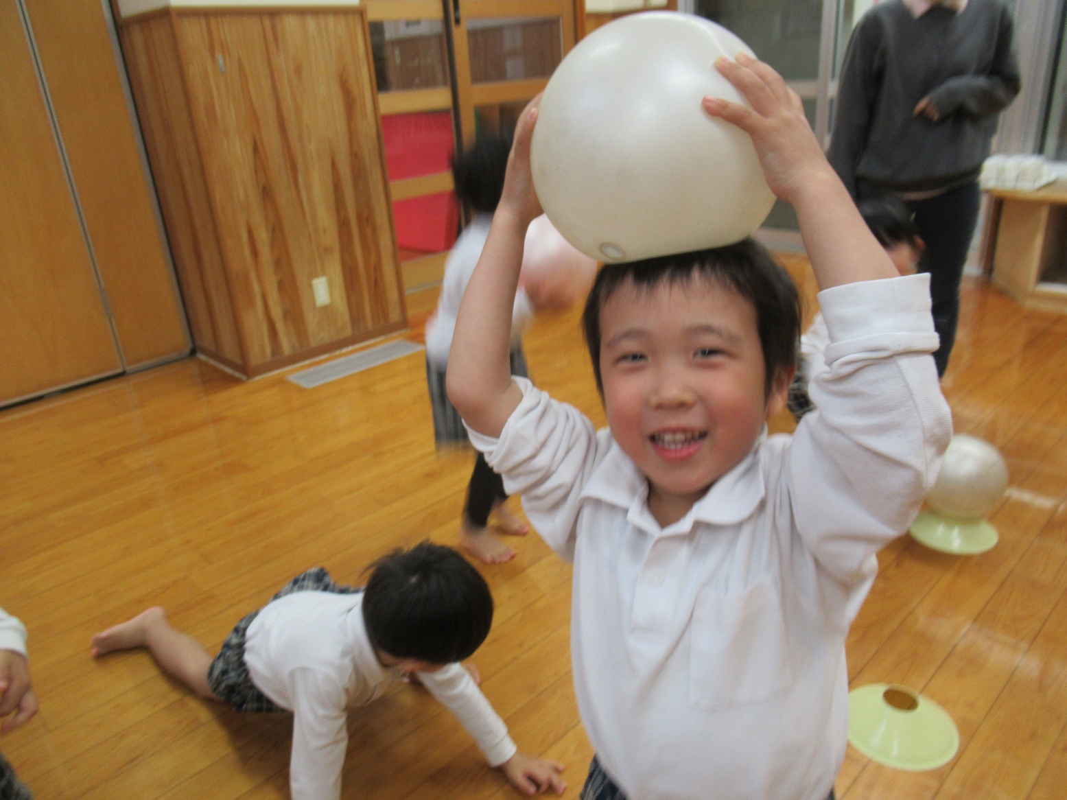 「いつボールって言うかドキドキするね。」「先生今頭って言った!」「次は口だよ!」と、違う掛け声に騙されないようによく耳を澄ませる子どもたち。