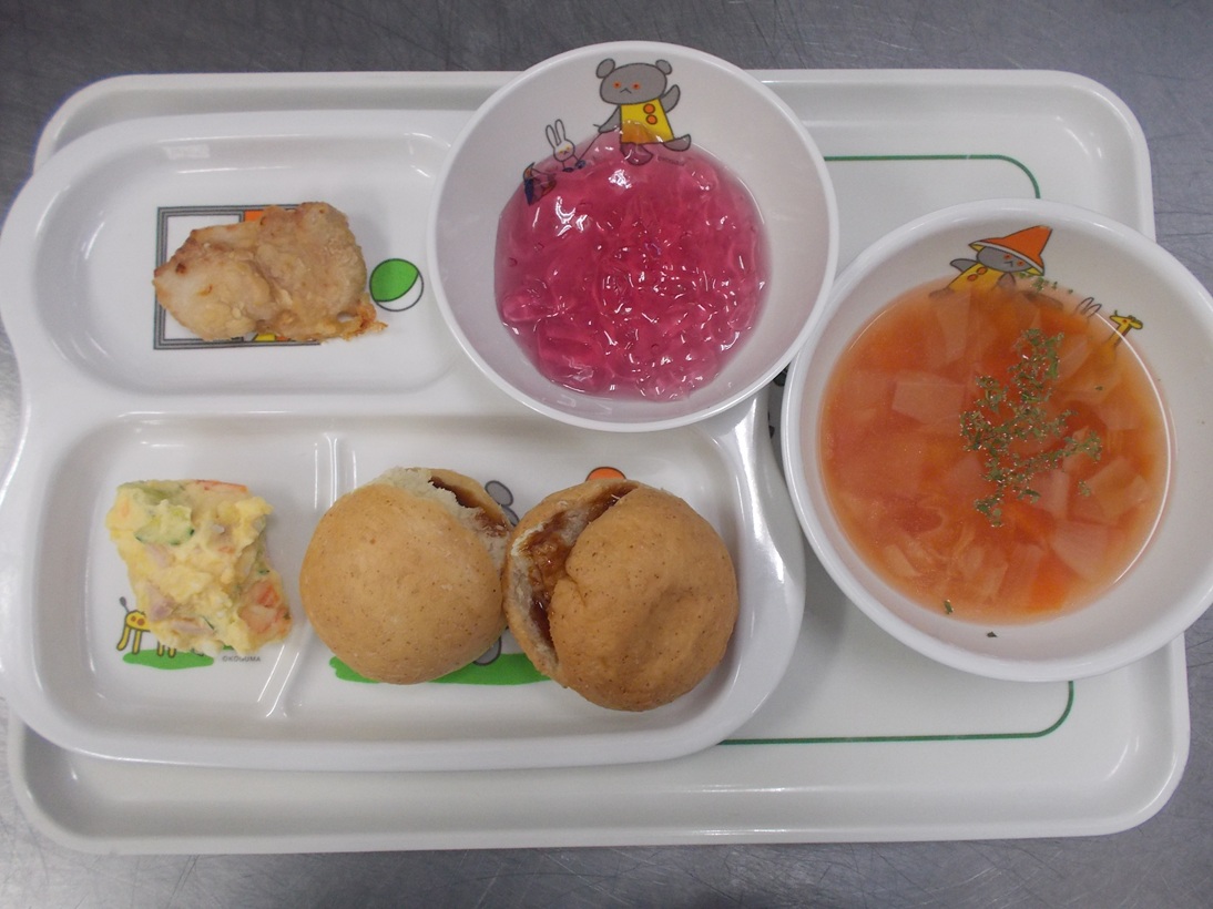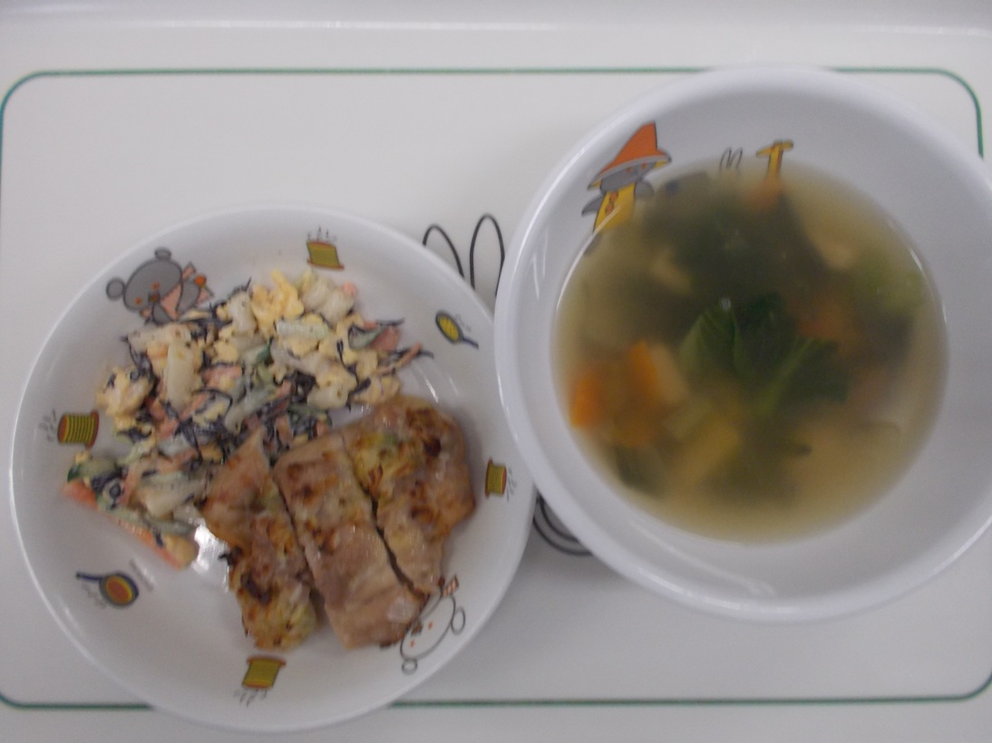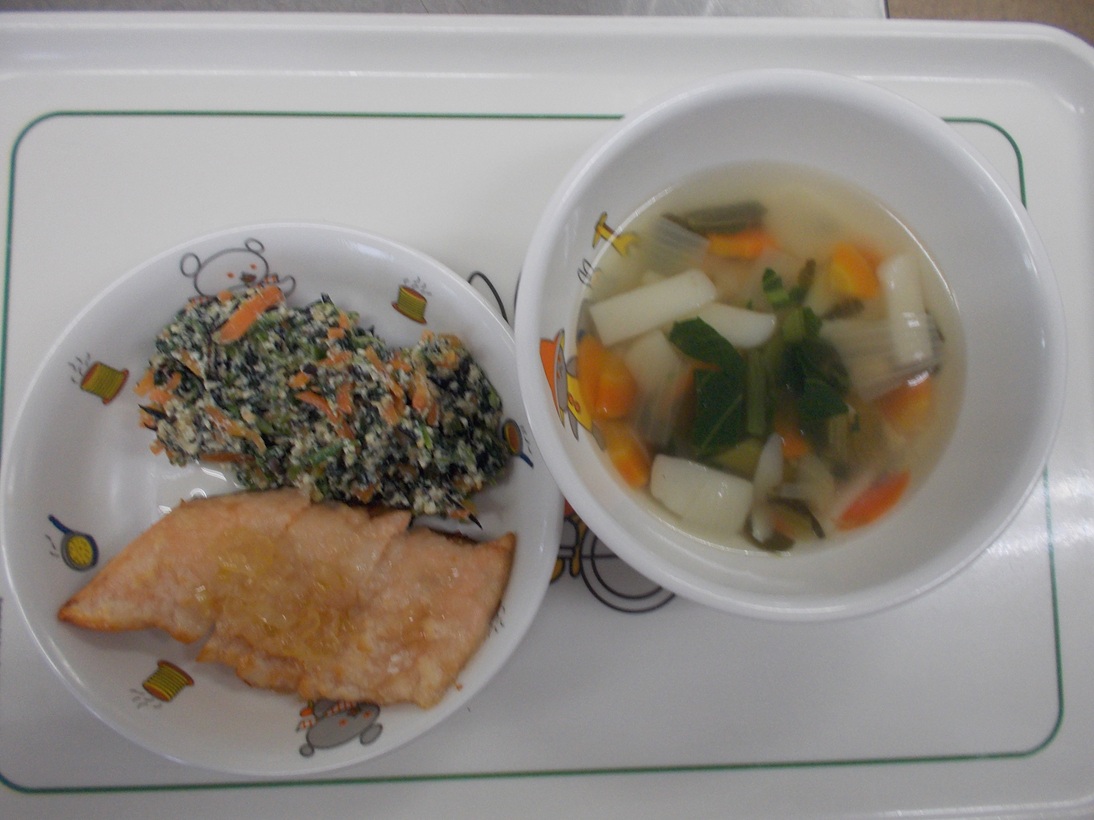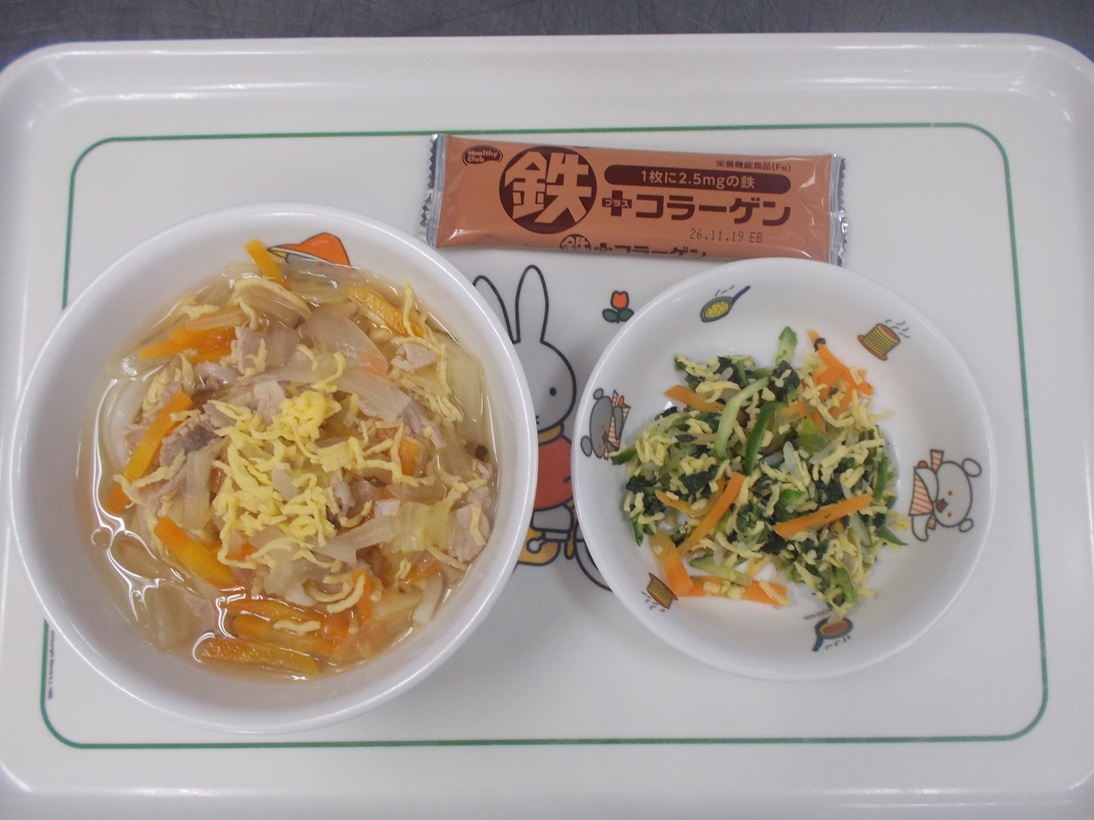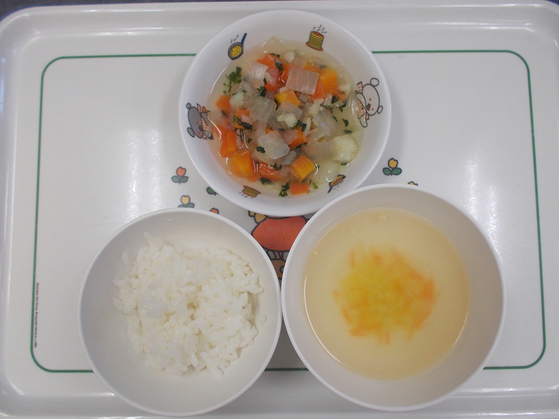 3月9日(月)から3月14日(土)までの給食献立写真・離乳食提供量と写真の一例です。