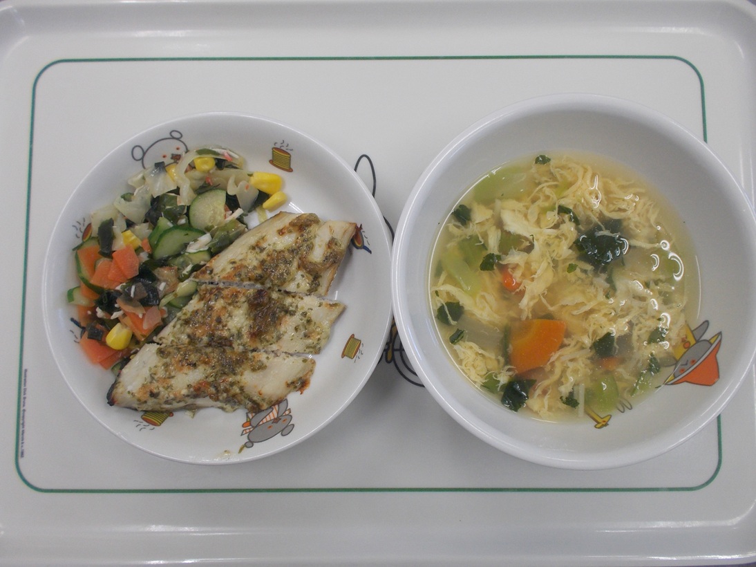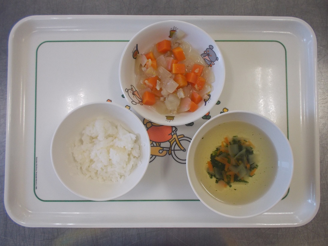 3月16日(月)から3月21日(土)までの給食献立写真・離乳食提供量と写真の一例です。