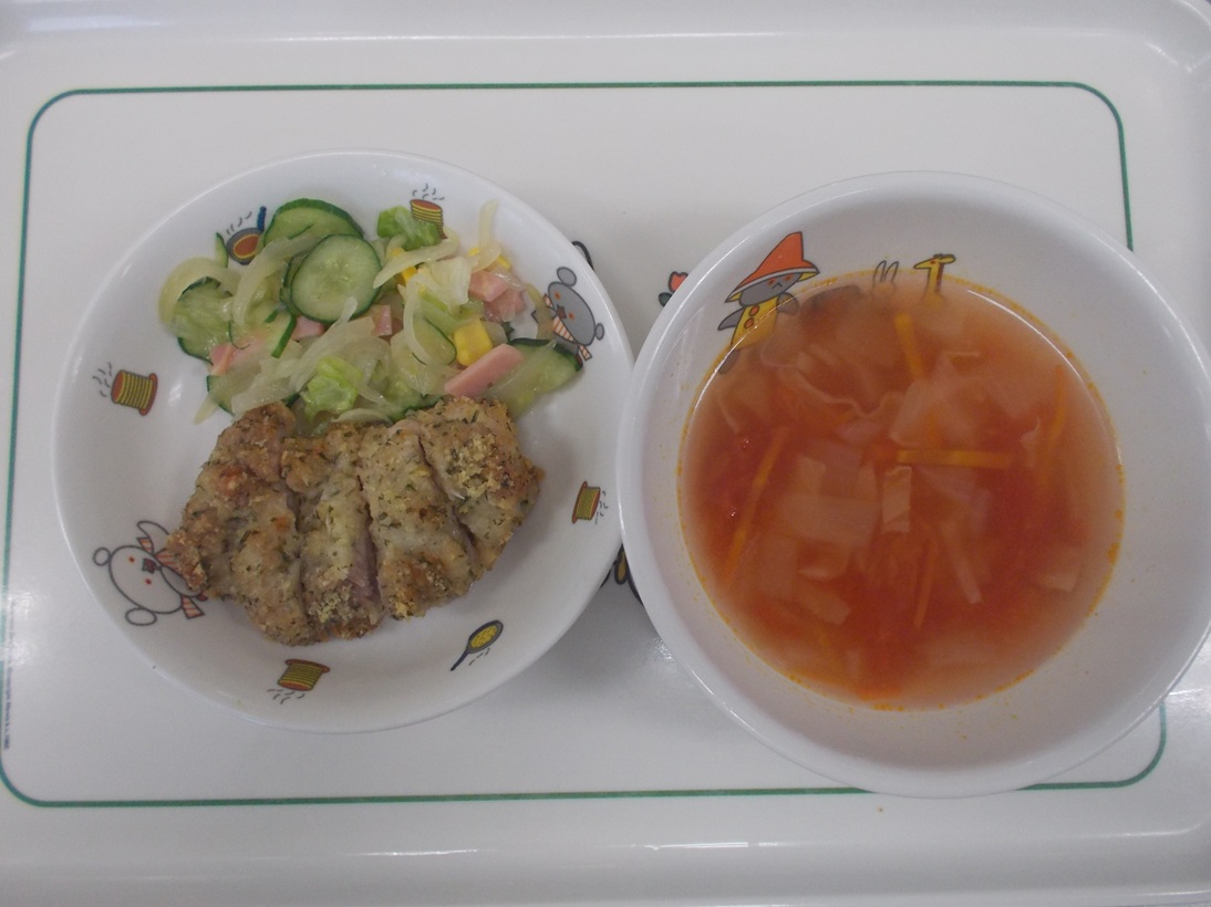 3月16日(月)から3月21日(土)までの給食献立写真・離乳食提供量と写真の一例です。