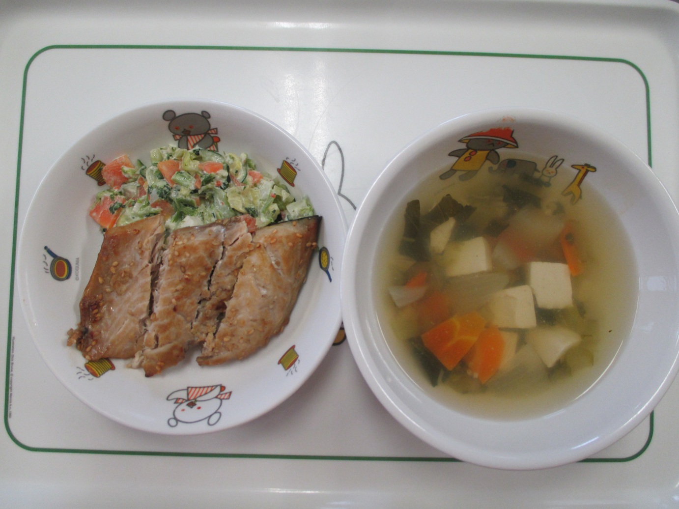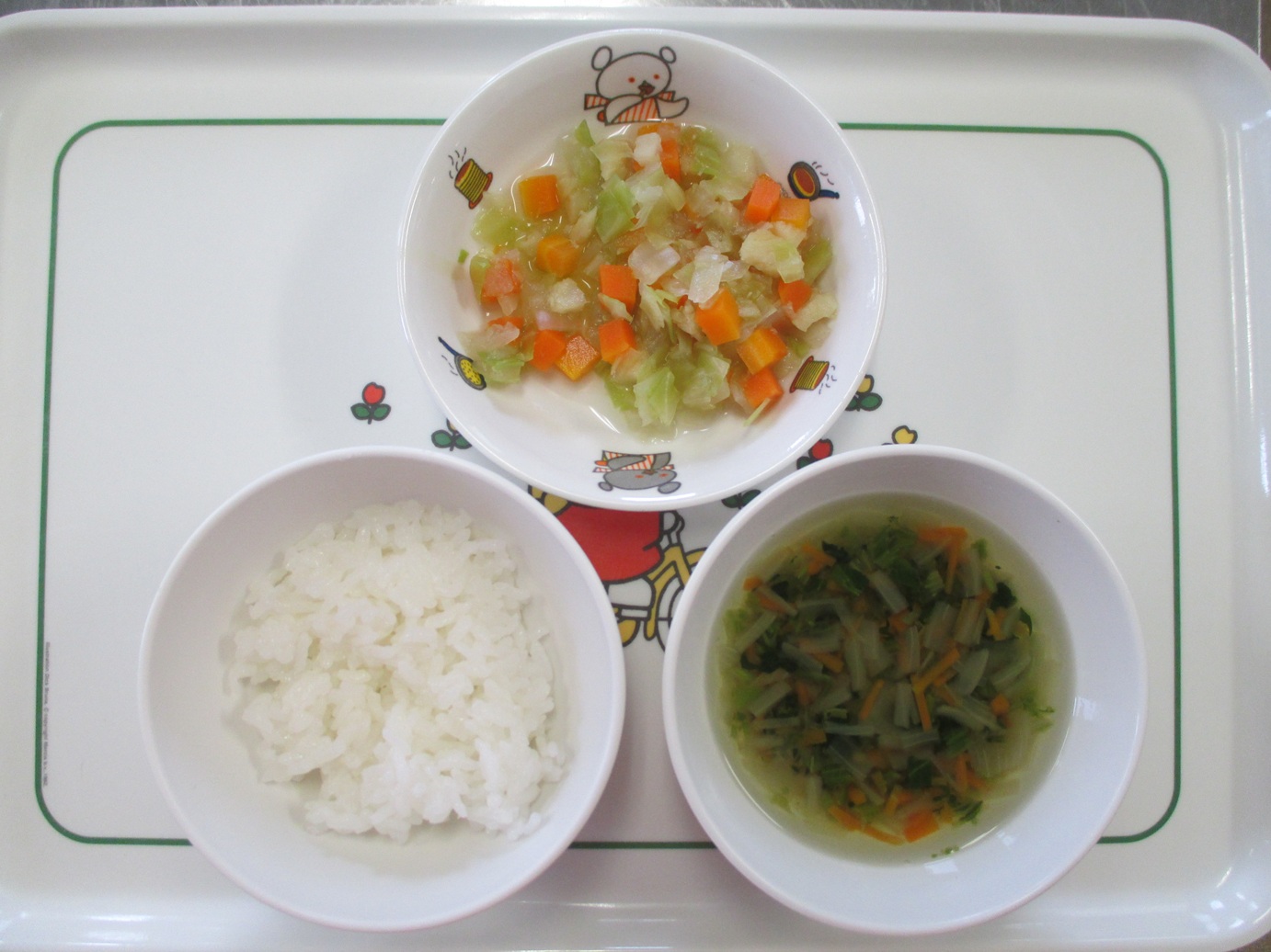 3月30日(月)から4月4日(土)までの給食献立写真・離乳食提供量と写真の一例です。