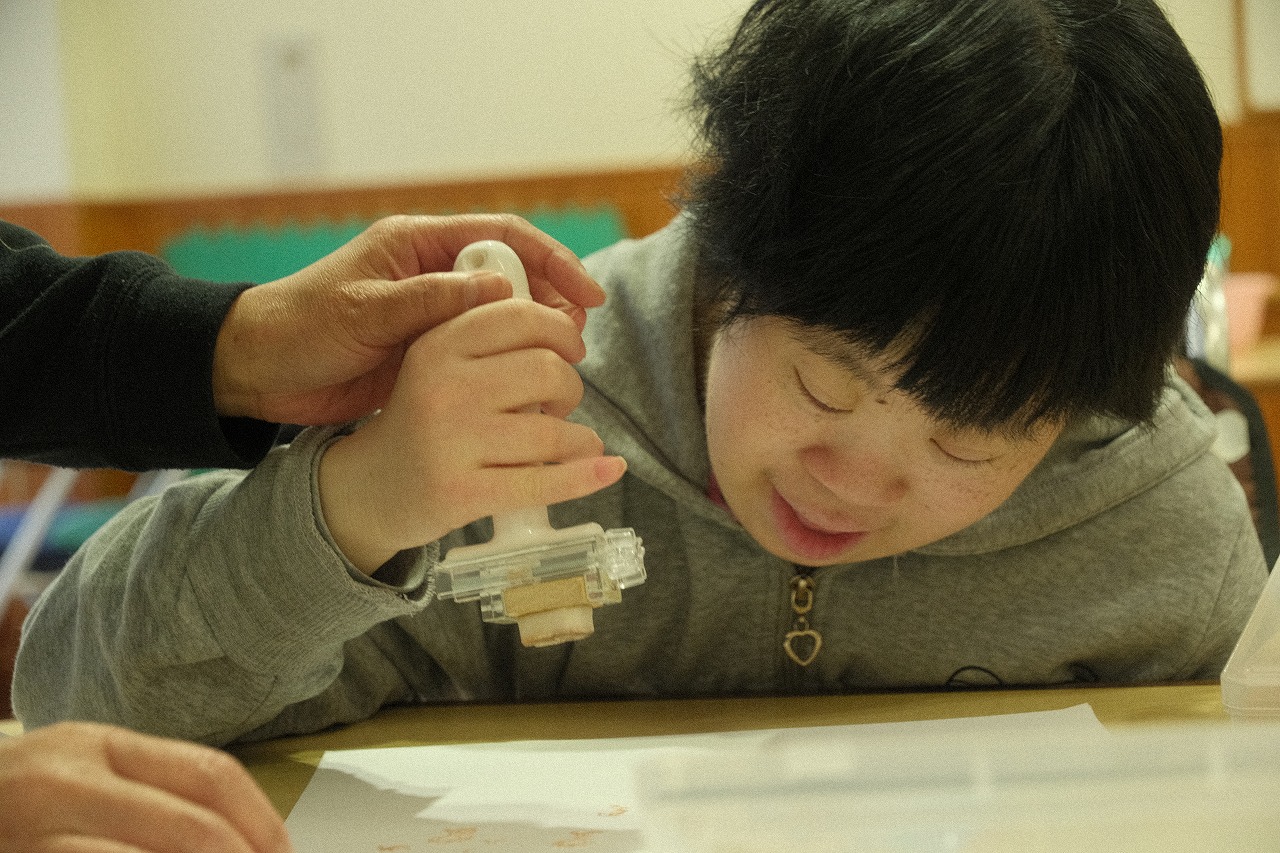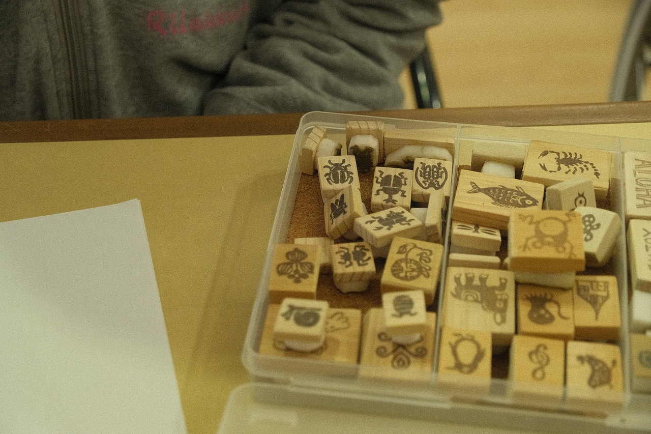 今日はレクリエーション活動で、消しゴムハンコをしました。 たくさんの素敵なハンコから、好きな物を選んで皆さん、思い思いにスタンプを押されておりました。 皆さん、とても真剣な表情で力を込めてスタンプをすることができました。 上手にできるか楽しみですね♪ 色とりどりの素敵なスタンプができました! 一人ひとり、同じハンコでも色が違ったり押す力によって個性が出てとても素敵なスタンプになりますね♪ 次回から作品作りに向けて楽しみながら頑張っていきましょう!