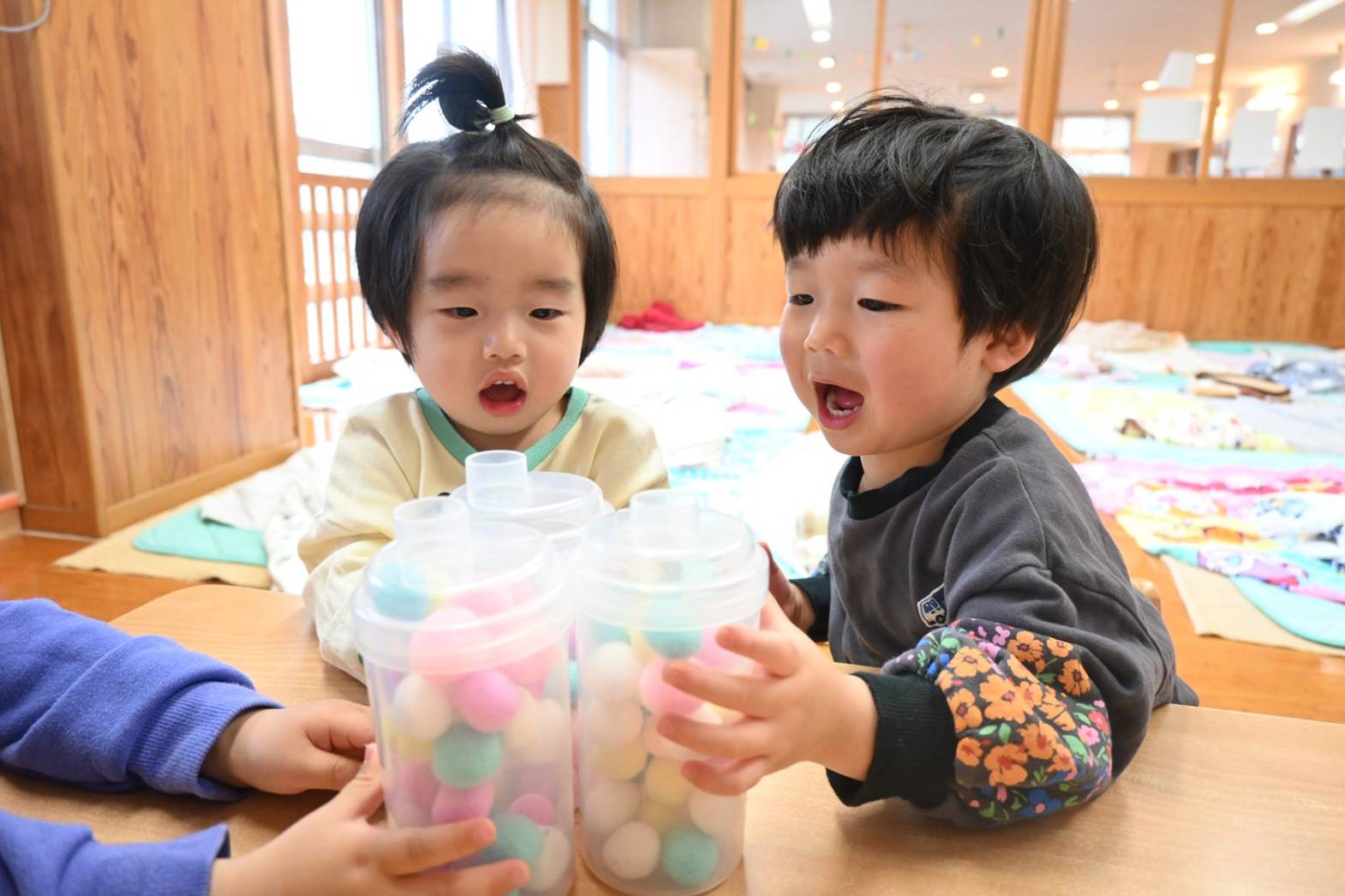 お友だちとのかかわりも増え、「一緒に遊ぼう。」と誘ったり、手を繋いだりと微笑ましい姿がたくさん見られています。