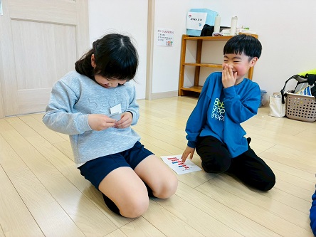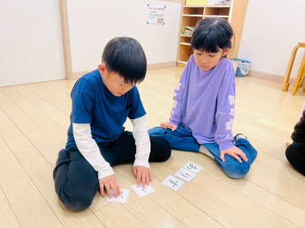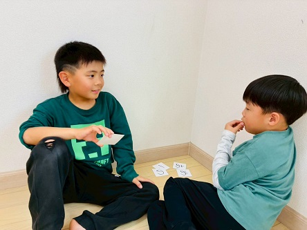 放課後等デイサービスでは、平仮名ポーカーを行いました! 初めての活動に「何それ?」と興味津々な子どもたち。 職員からのルール説明を聞き逃さないよう真剣に聞く姿がありました! お友達とペアを組んで行った際には、5枚のカードに書かれた平仮名を見つめ、頭を悩ませながらも協力しながら単語を作り上げていく様子が見られました。 見事ファイブカードになると大喜びの子どもたちでした♪