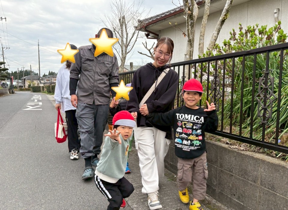 お父さん、お母さんと手をつないでのお散歩にみんな大喜び!
