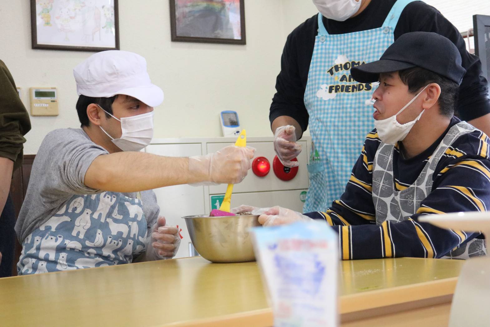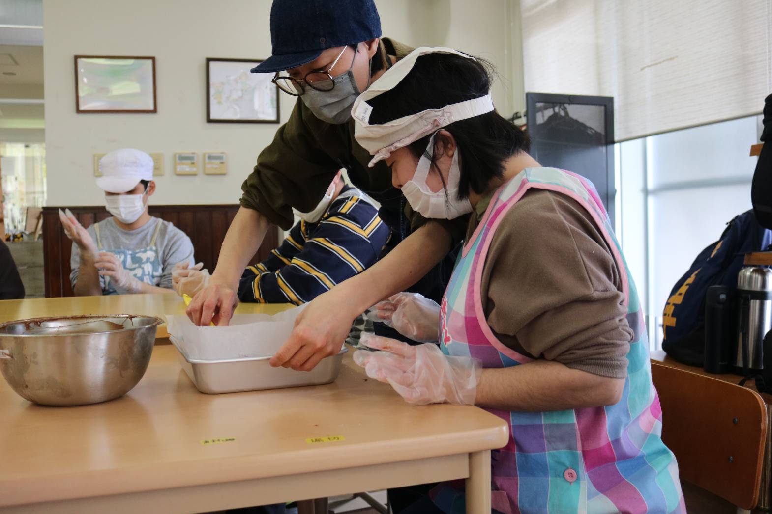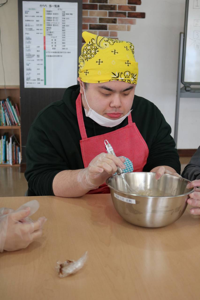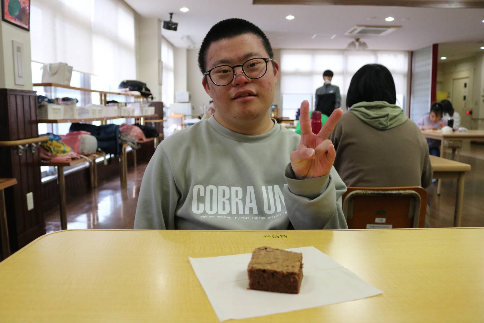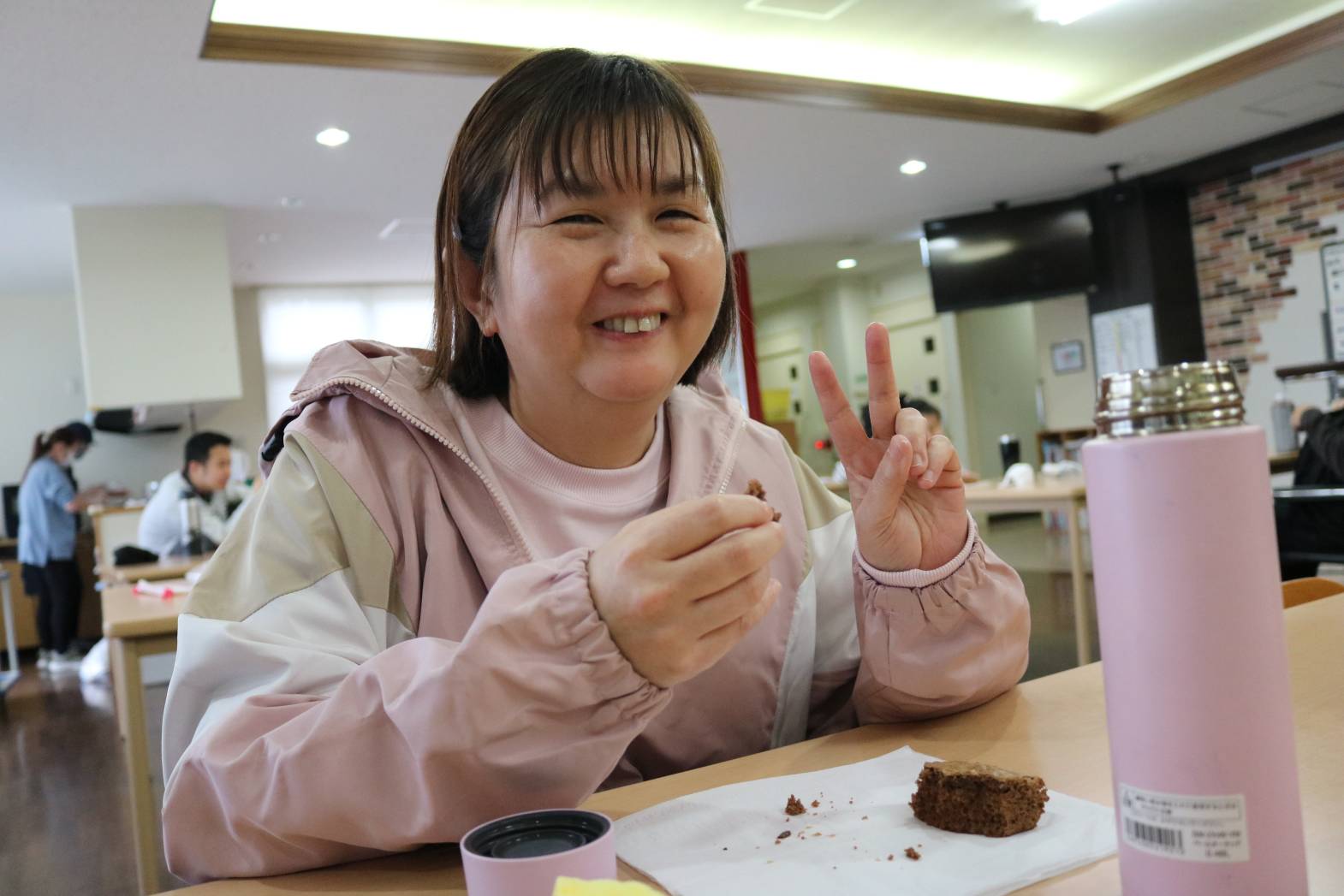 今回は先日行った調理活動「ブラウニーづくり」の様子をお伝えしていきます! 分量を量りや混ぜ合わせたり、卵を割ったりなどの工程を、みんなで分担して行いました。 調理の最後に、きららのアイドルのポージング♪ お楽しみの試食タイムです! みなさんいい笑顔😊 今回も楽しい調理活動になりました。 また、次回の活動もお楽しみに…