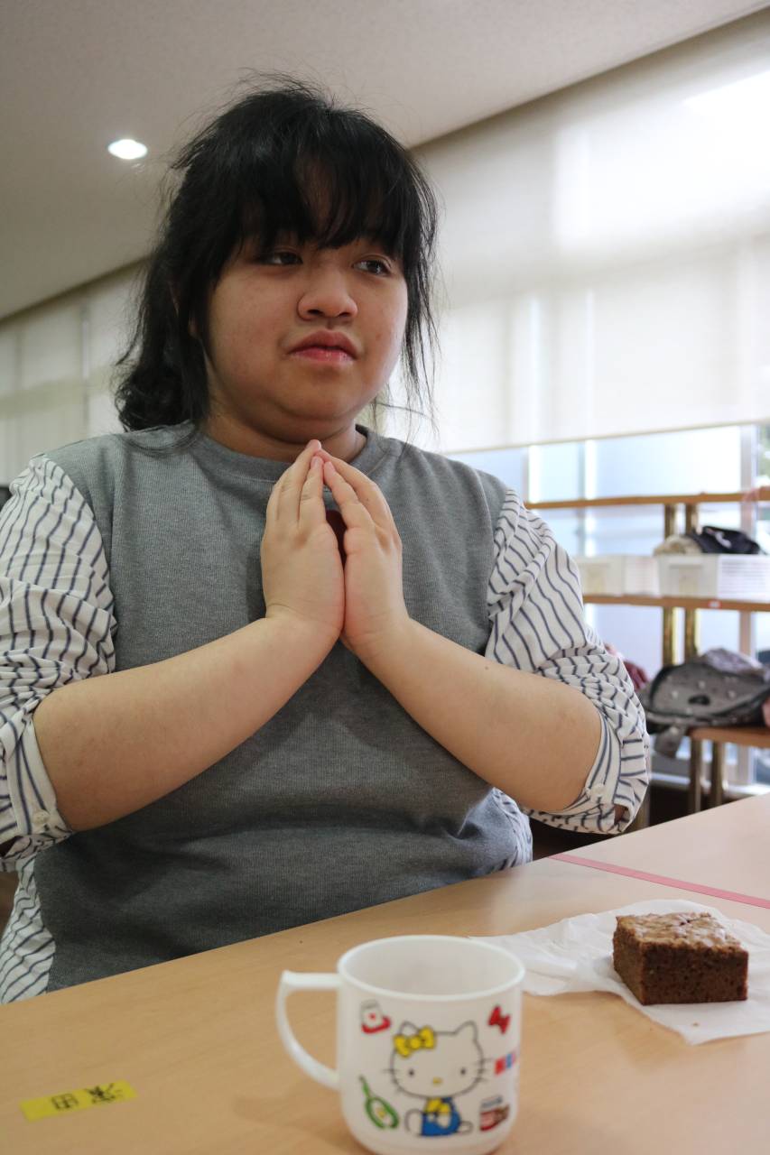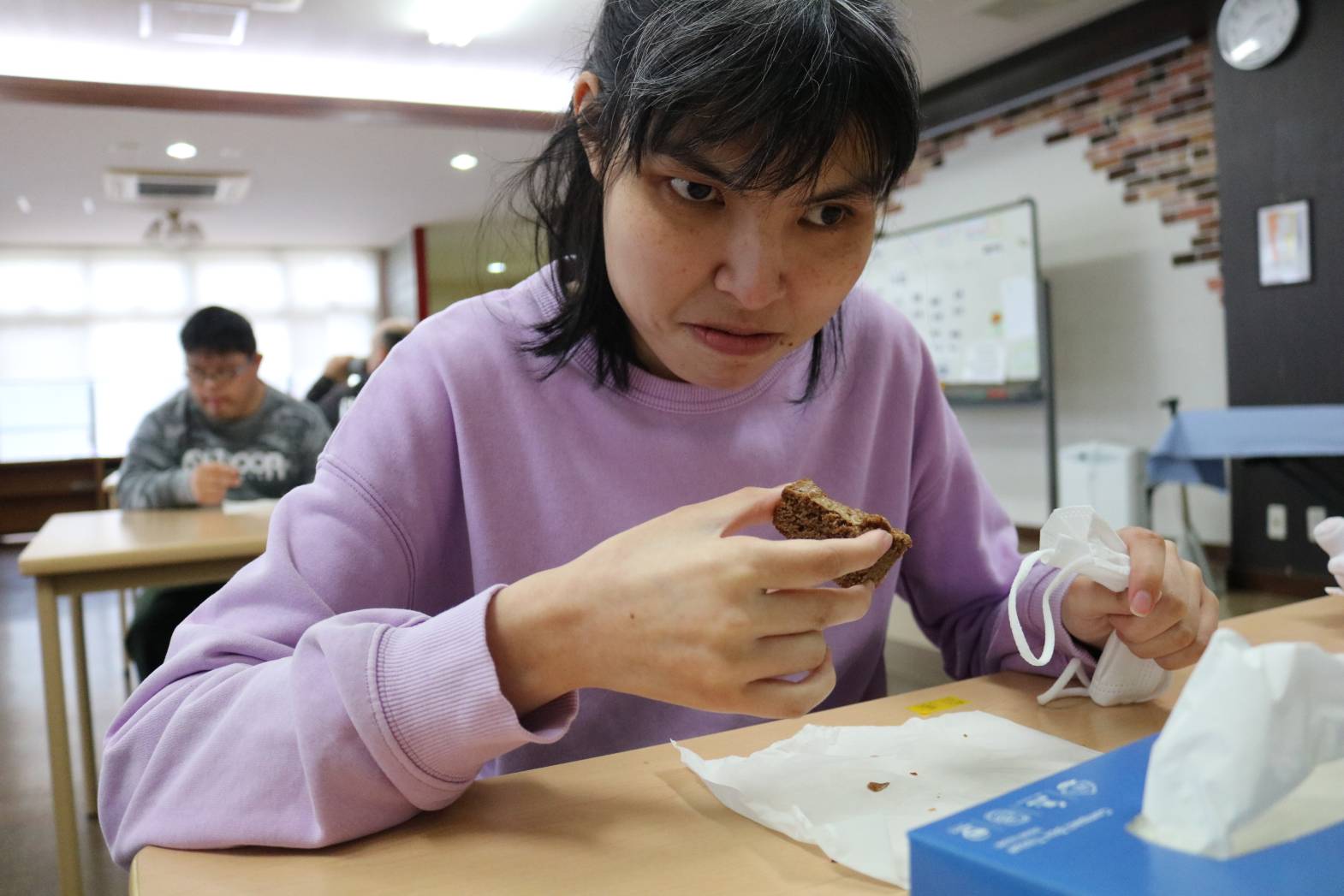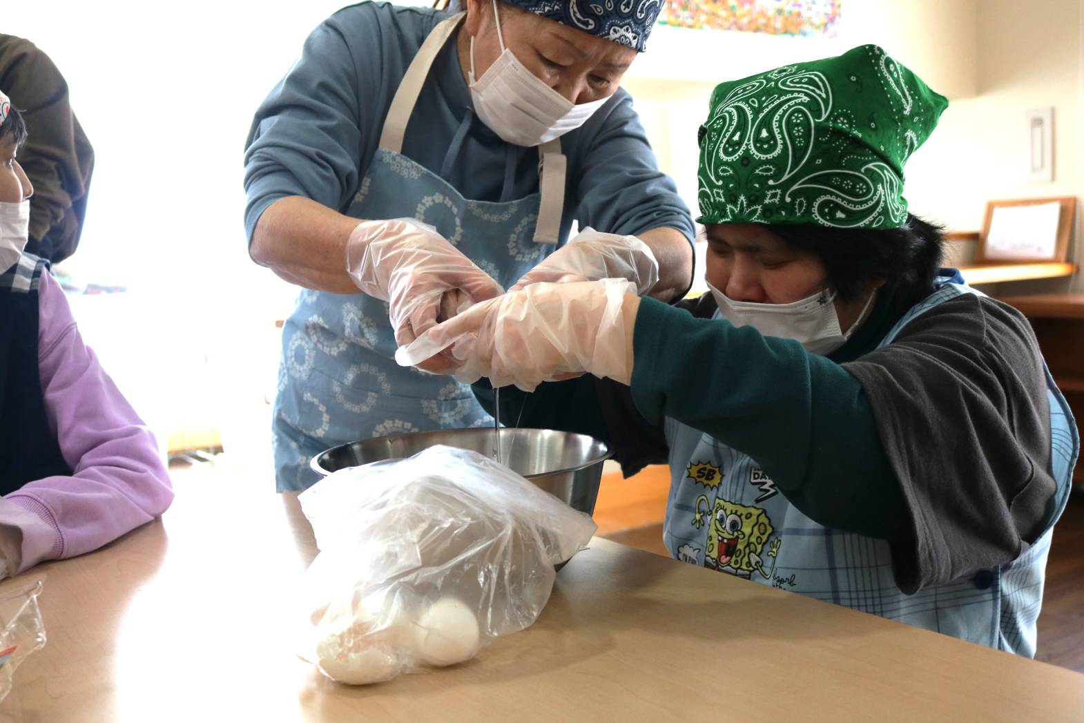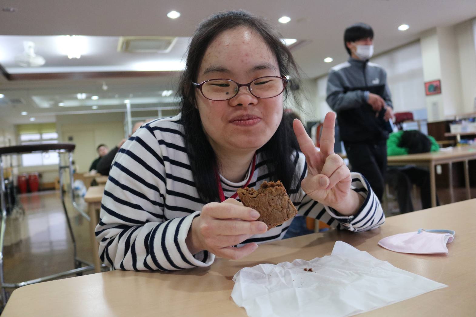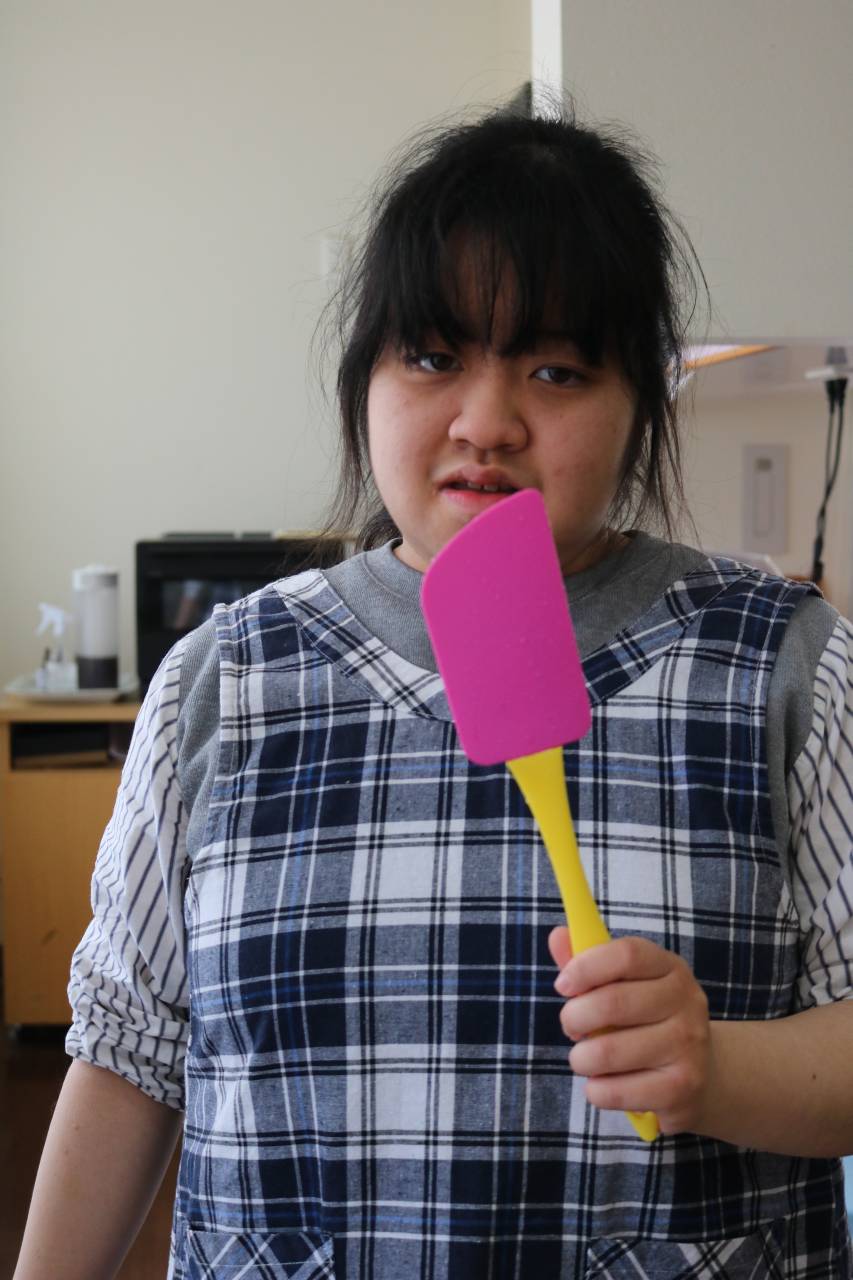 今回は先日行った調理活動「ブラウニーづくり」の様子をお伝えしていきます! 分量を量りや混ぜ合わせたり、卵を割ったりなどの工程を、みんなで分担して行いました。 調理の最後に、きららのアイドルのポージング♪ お楽しみの試食タイムです! みなさんいい笑顔😊 今回も楽しい調理活動になりました。 また、次回の活動もお楽しみに…