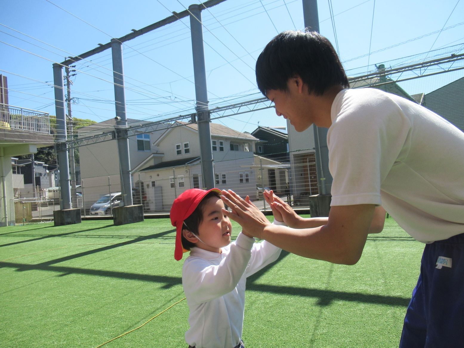 終了後は大好きな先生と「一年間ありがとう!」と、ハイタッチするりす組さんでした。