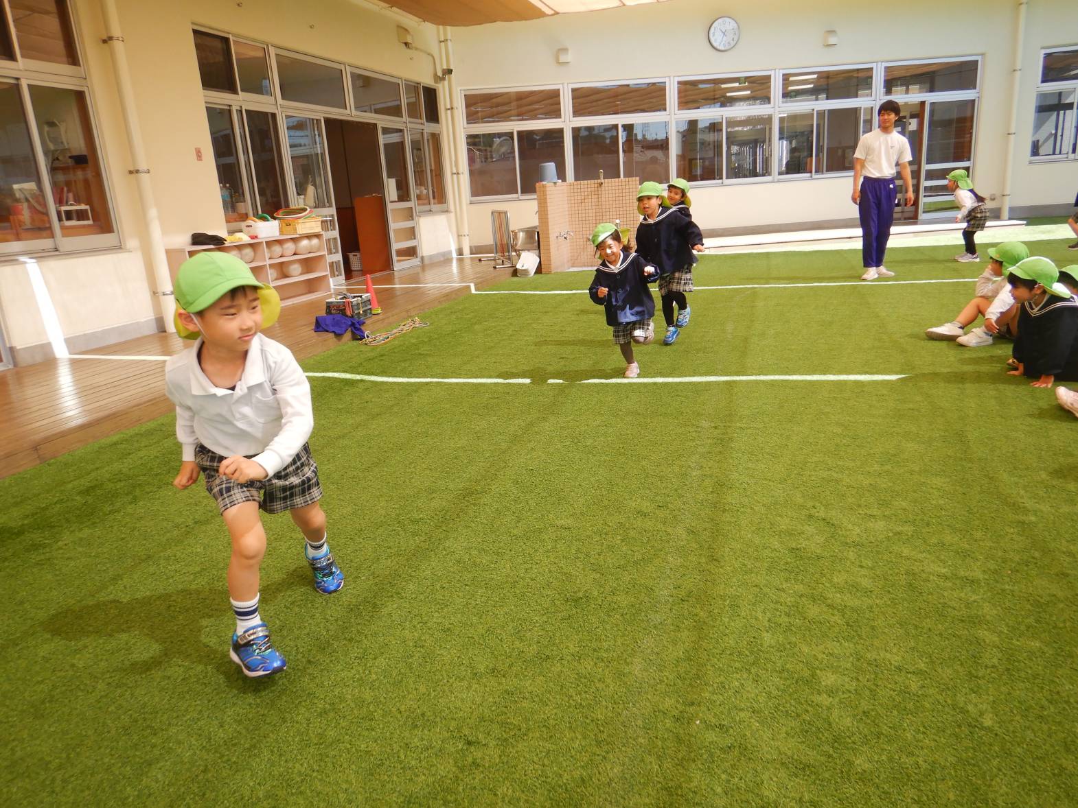 「今日でりす組さん最後の運動遊びだよね!」「頑張るぞ!」と、張り切る子どもたち。