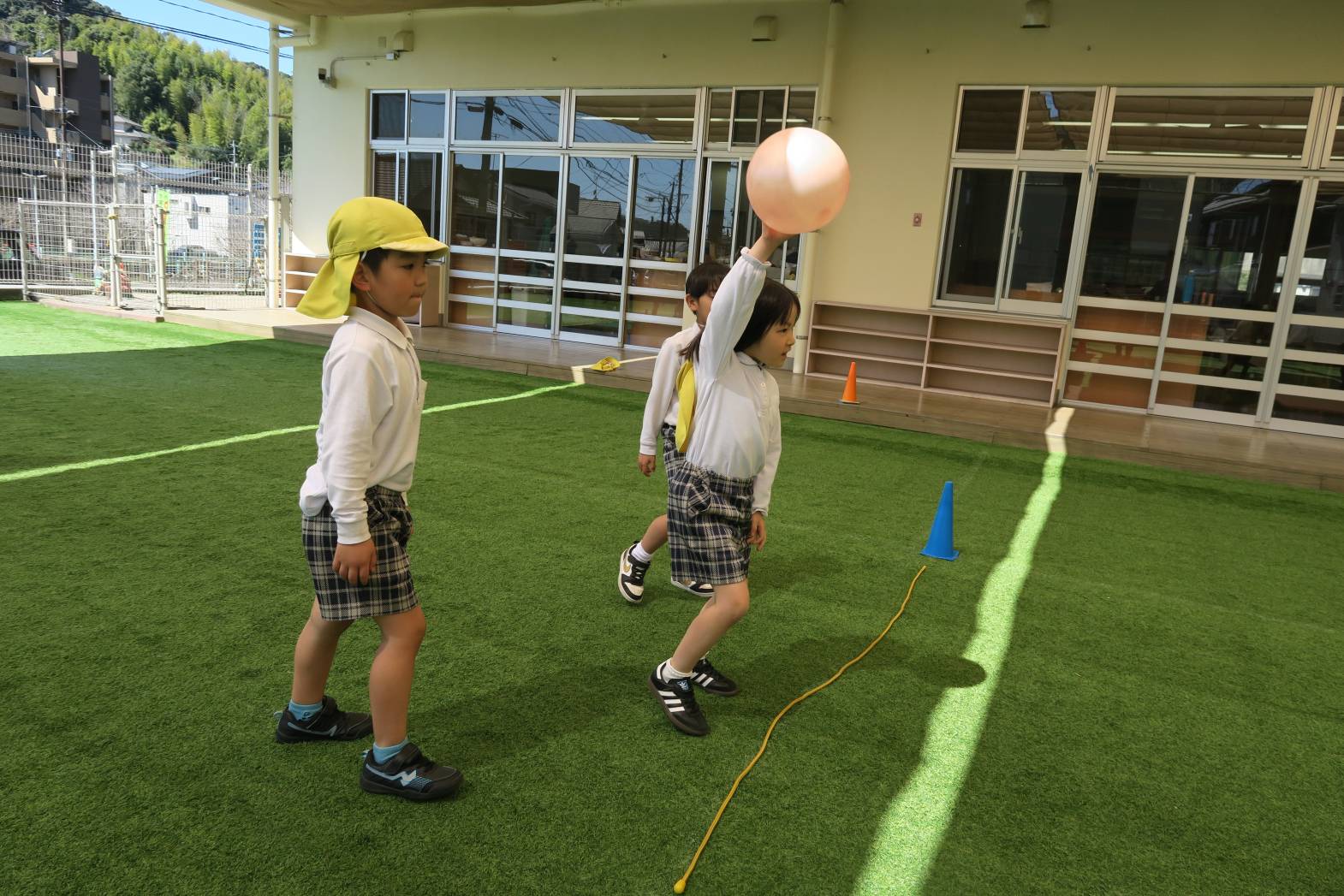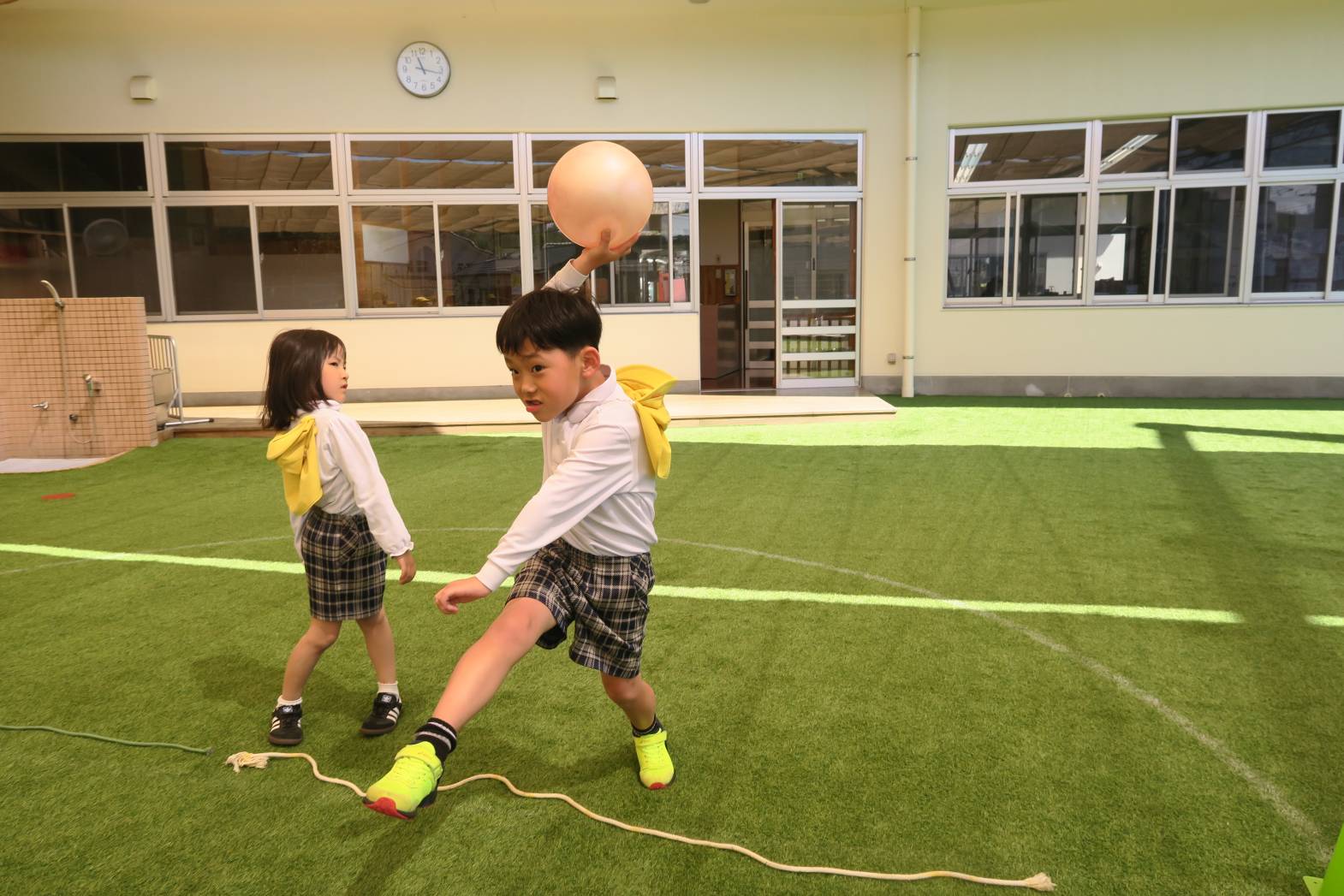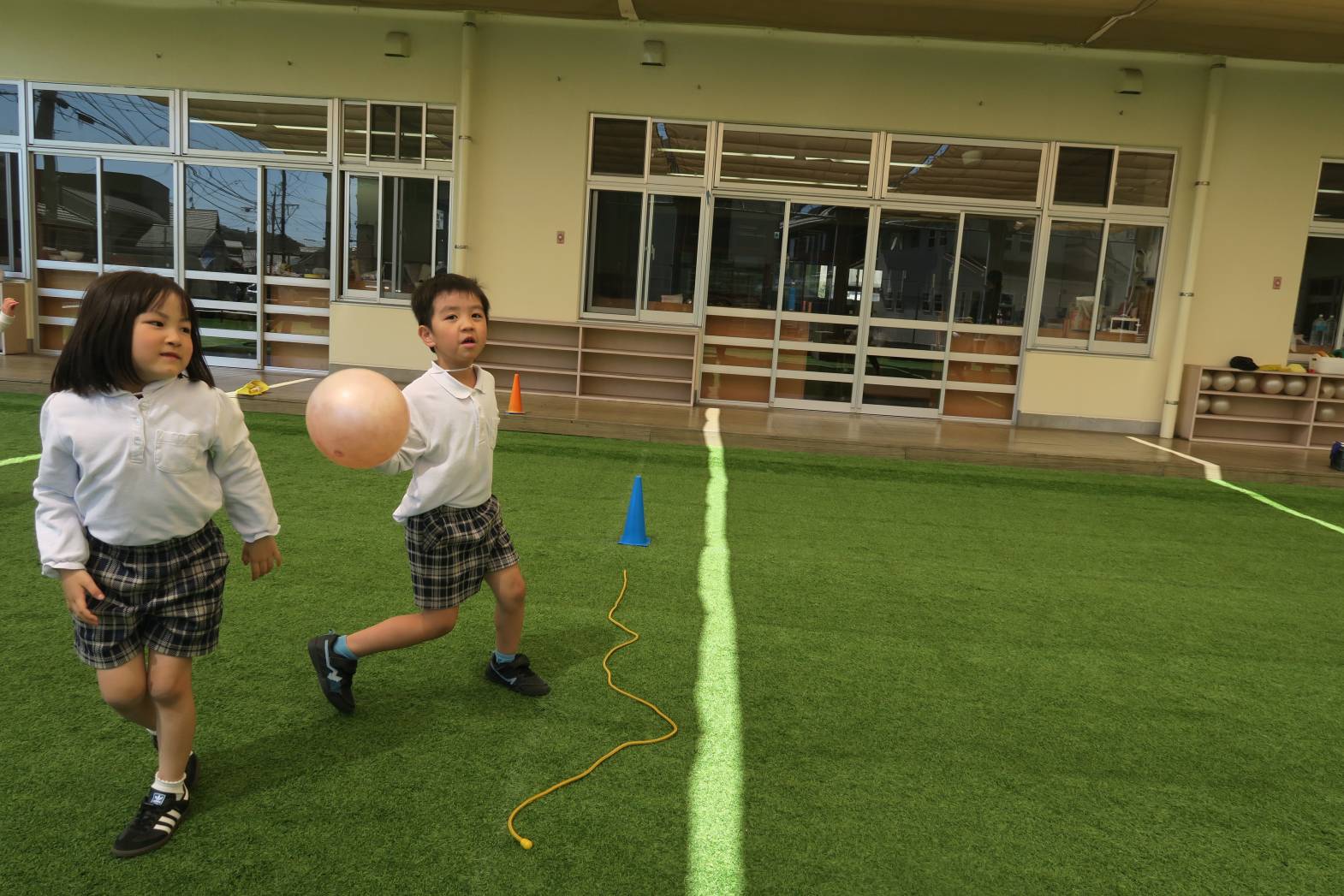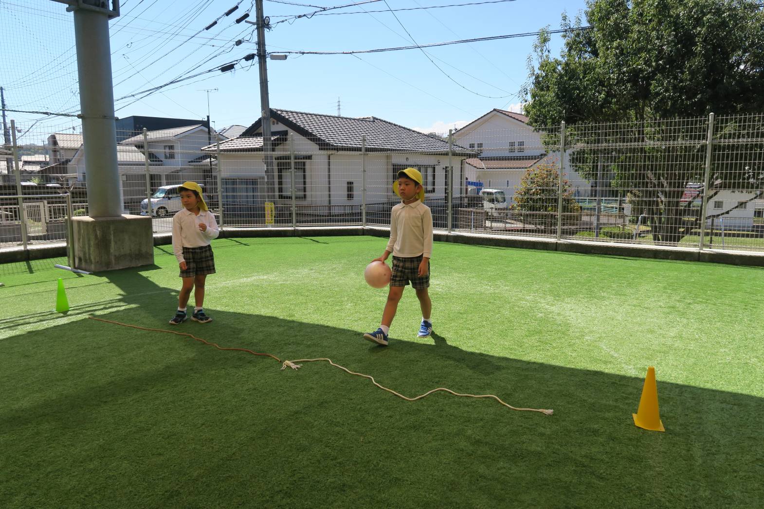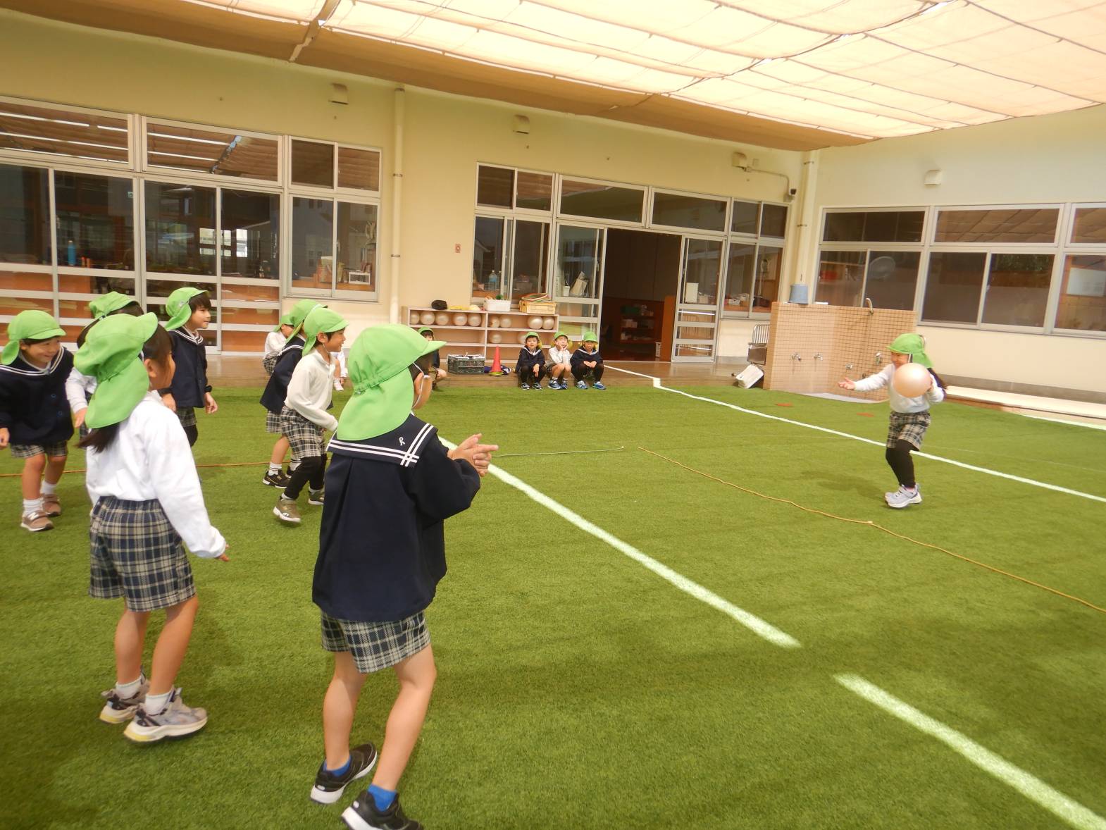 「やった!キャッチできた!」「あっちに投げるね。」と、ボールを意欲的にキャッチしたり、投げたりする姿が見られました。