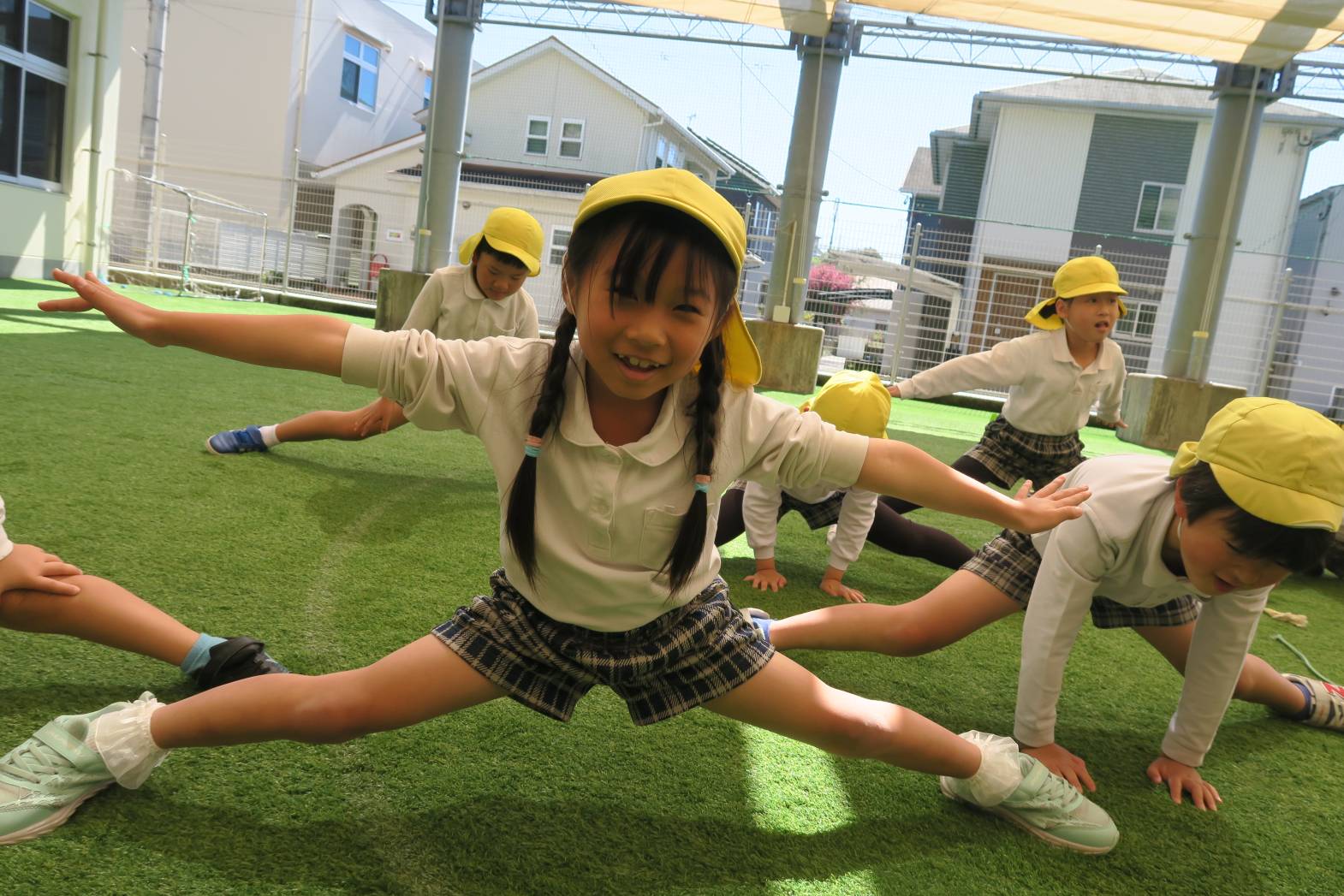 「見て見て!こんなに足が開けたよ。」と嬉しそうな様子です。