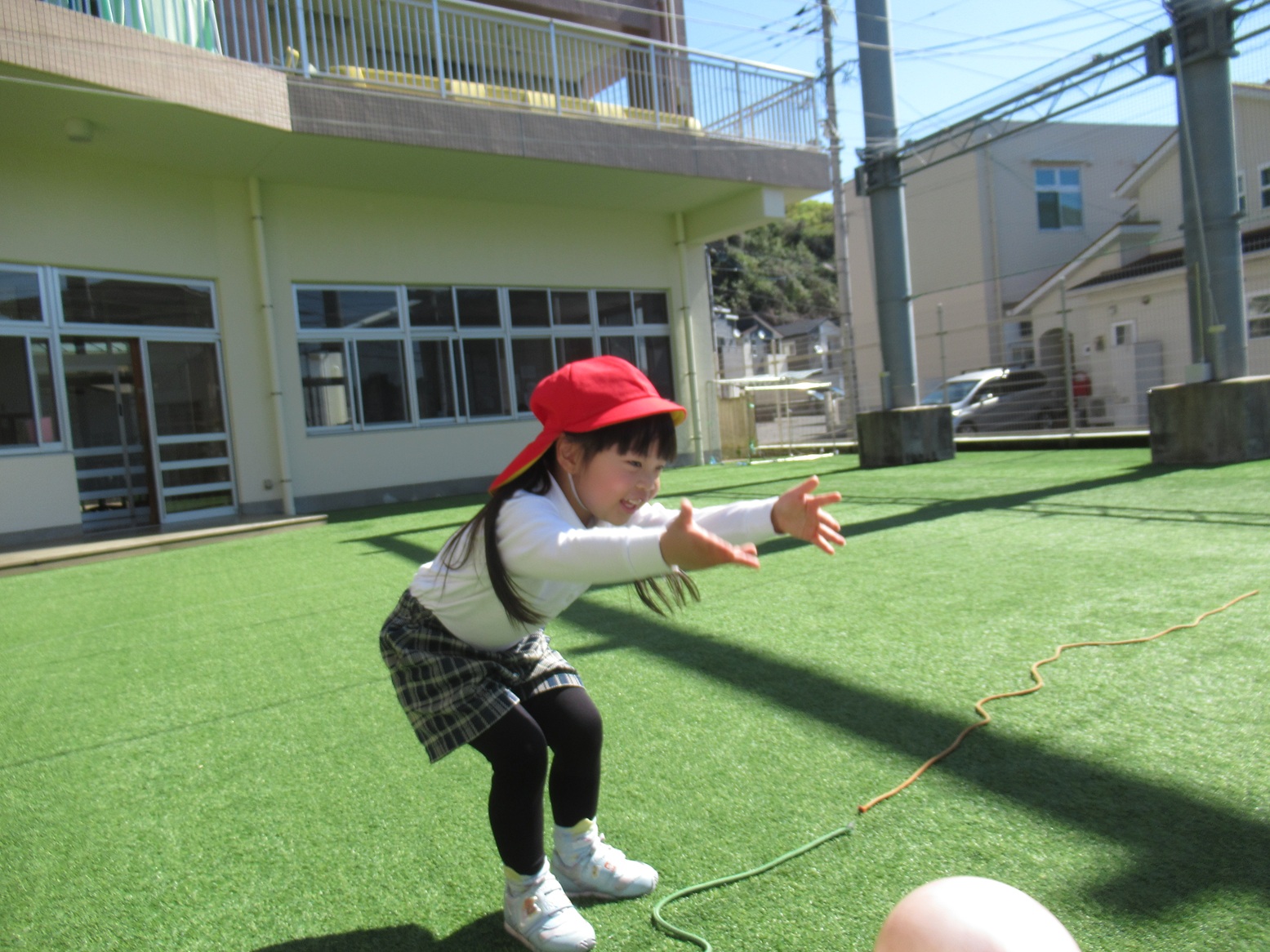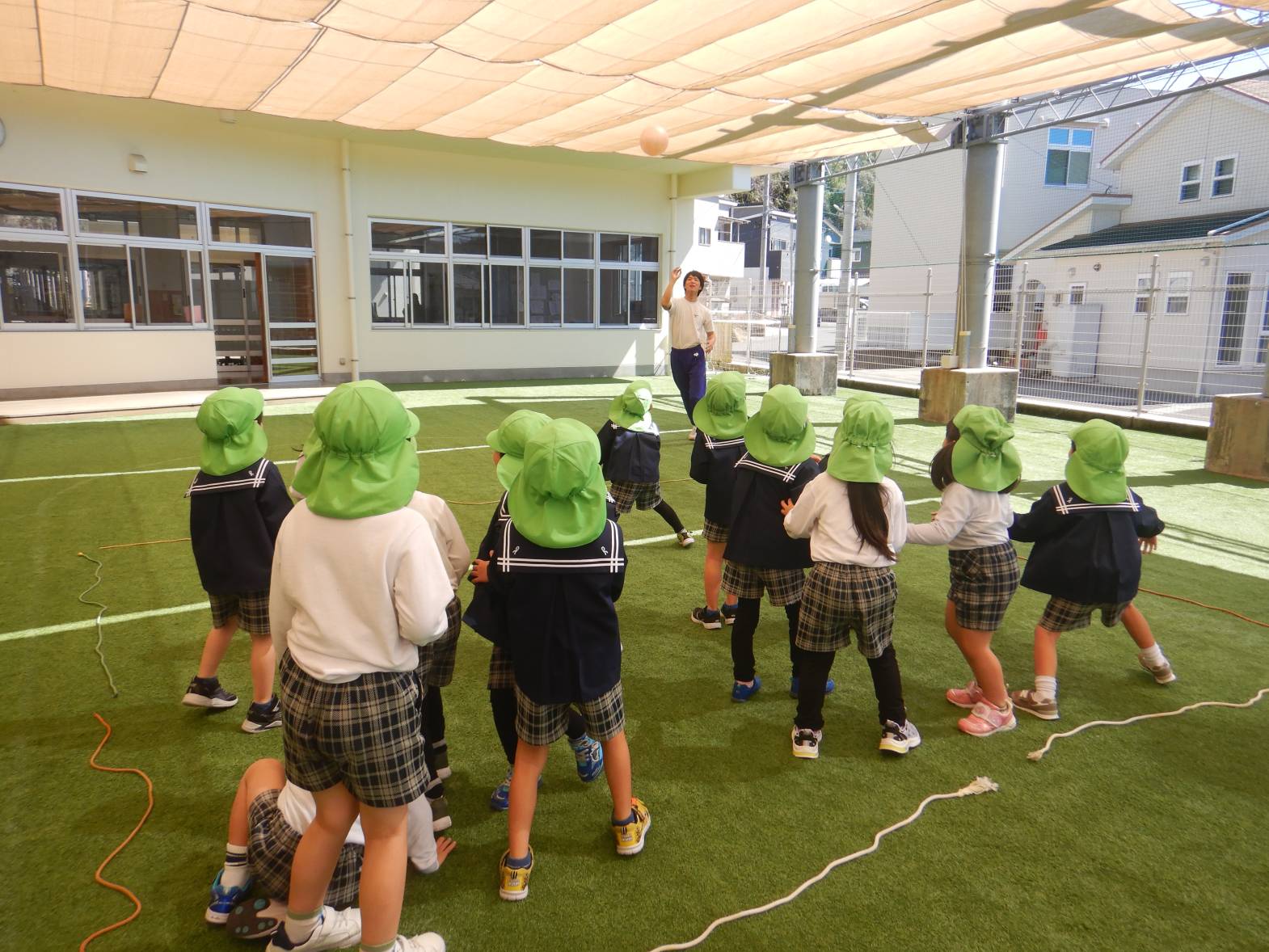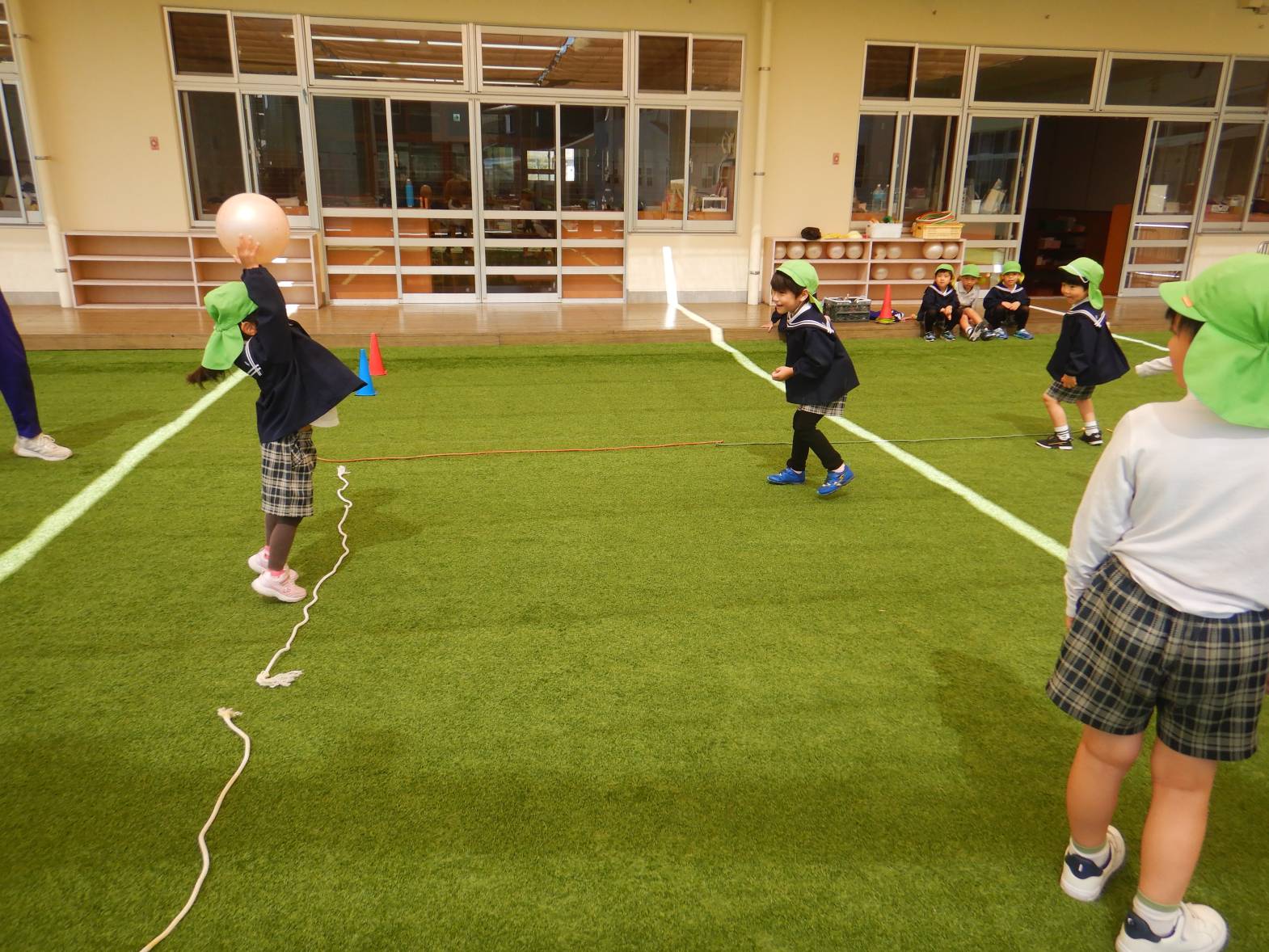 「やった!キャッチできた!」「あっちに投げるね。」と、ボールを意欲的にキャッチしたり、投げたりする姿が見られました。