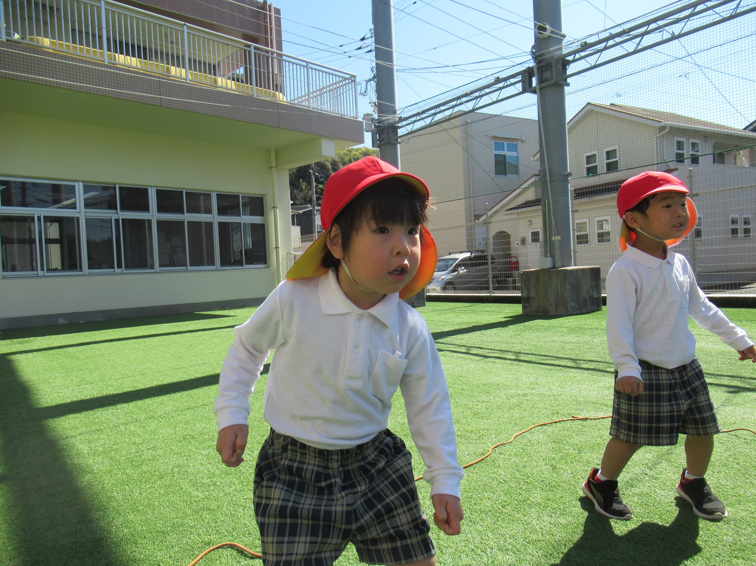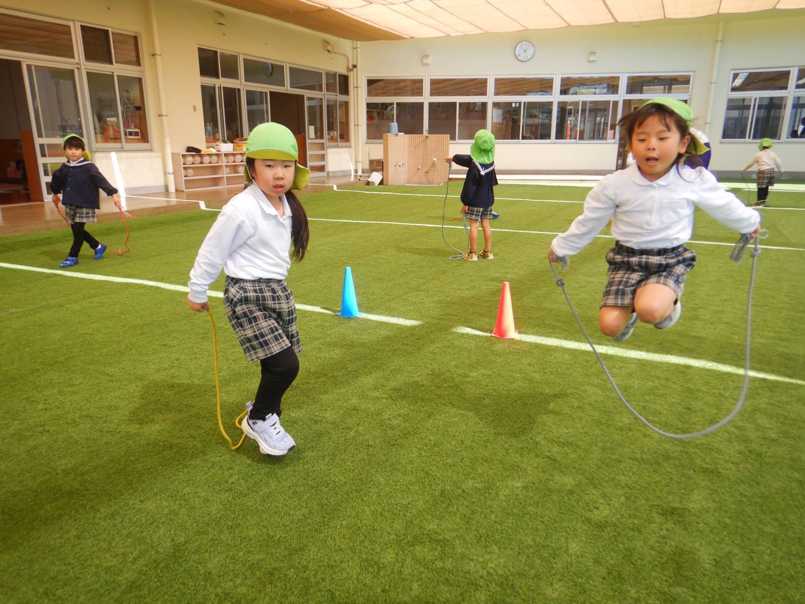 「今日は縄跳びだ!」「早くしたいね。」と気合十分。