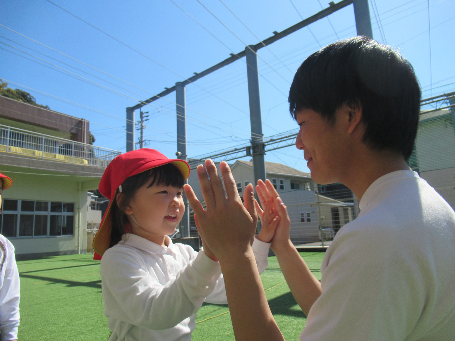終了後は大好きな先生と「一年間ありがとう!」と、ハイタッチするりす組さんでした。
