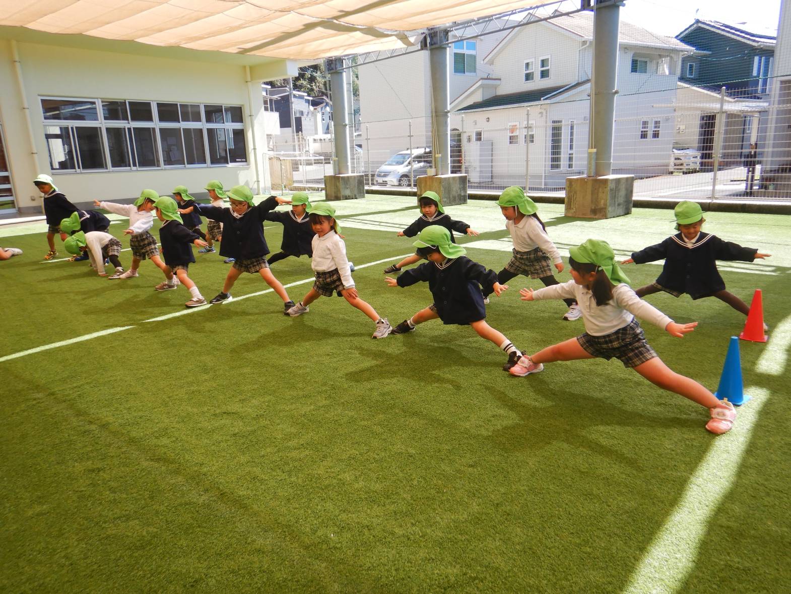 「今日でりす組さん最後の運動遊びだよね!」「頑張るぞ!」と、張り切る子どもたち。