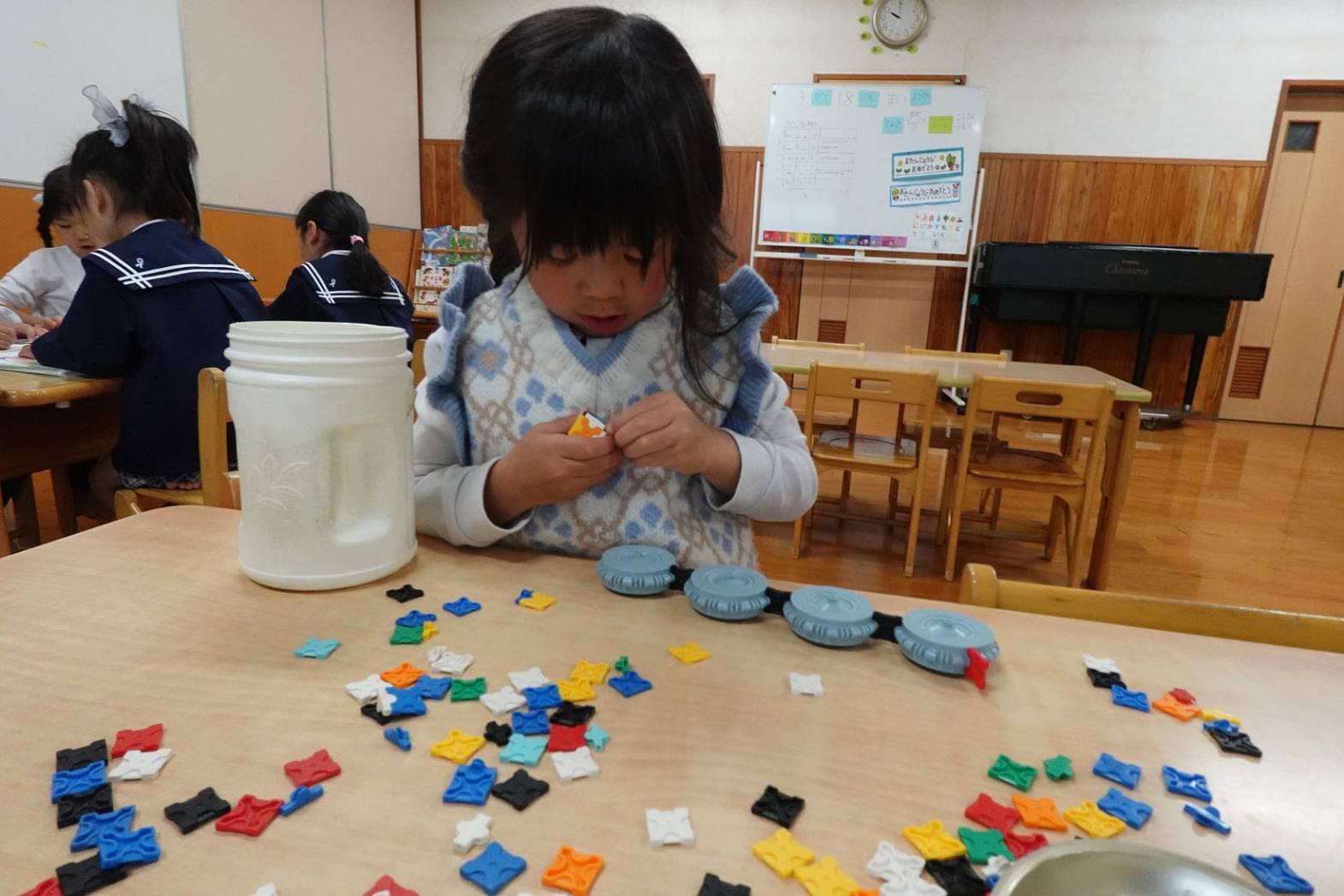 きりん組のお部屋で過ごすようになり、「このおもちゃやってみたい!」「一緒に遊ぼ!」と日々新しい玩具に大興奮の子どもたち。