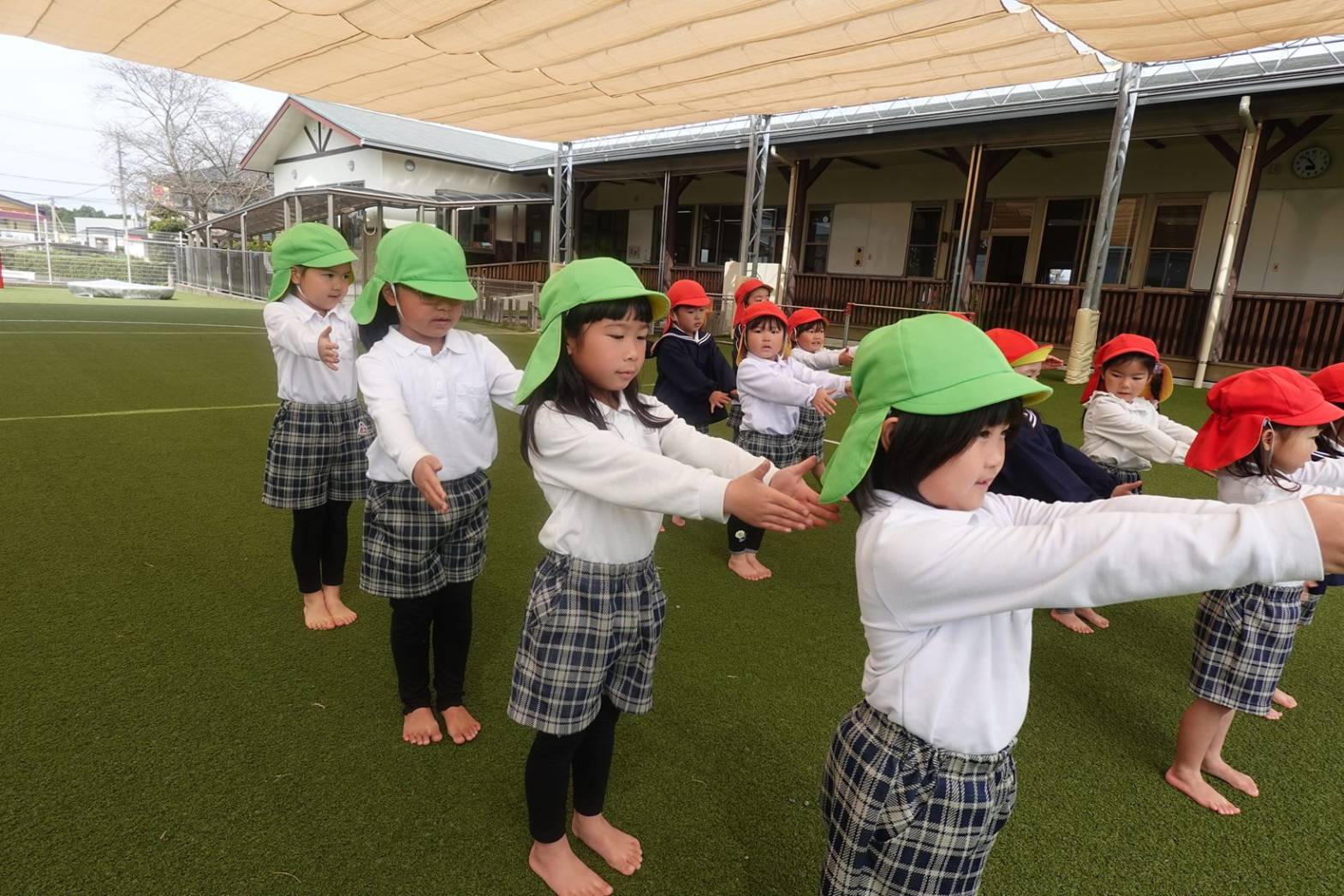 朝のお集まりもりす組さんと一緒に取り組んでいます。