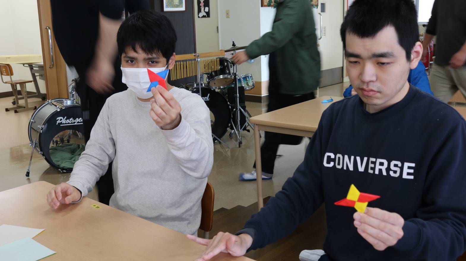 きららのアイドル!!の写真から始まりました、きららブログです。 本日は「折り紙で遊ぼう」の様子をお伝えしていきます! まずは、お好きな色を選んでいただいて「シュリケン」と「カブト」制作開始です。 大盛り上がりの「折り紙で遊ぼう」でした。 また、次回の活動をお楽しみに!