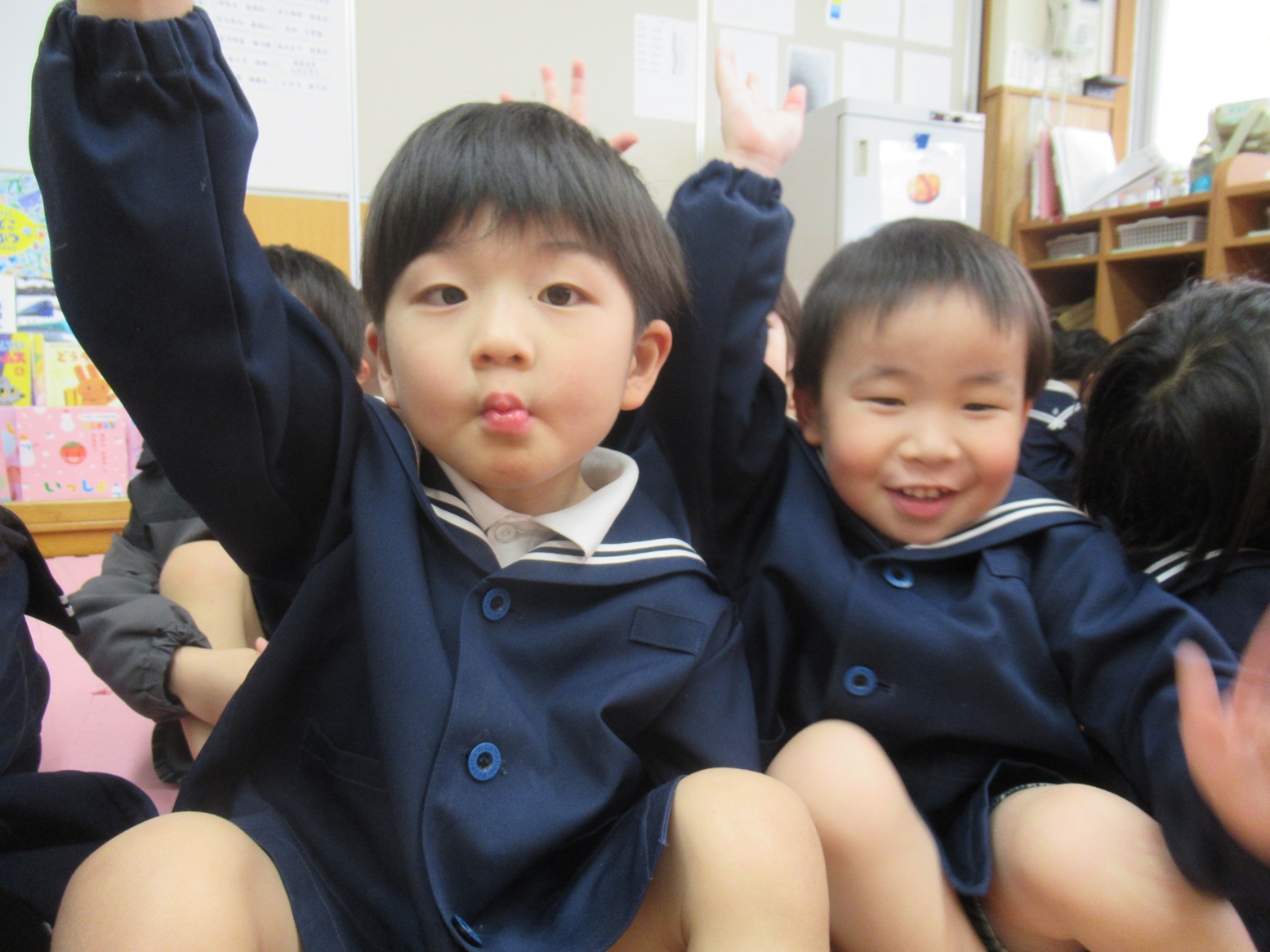 初めは新しいクラスに少しドキドキしていましたが、「うさぎ組さーん!」と呼ばれると、照れながらも嬉しそうな表情が見られました。
