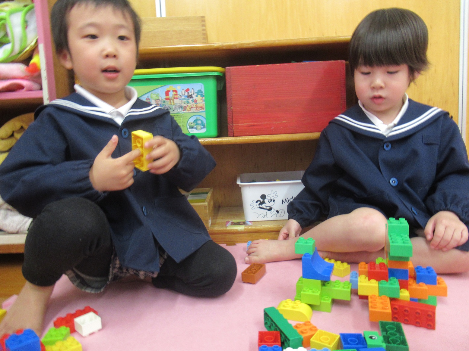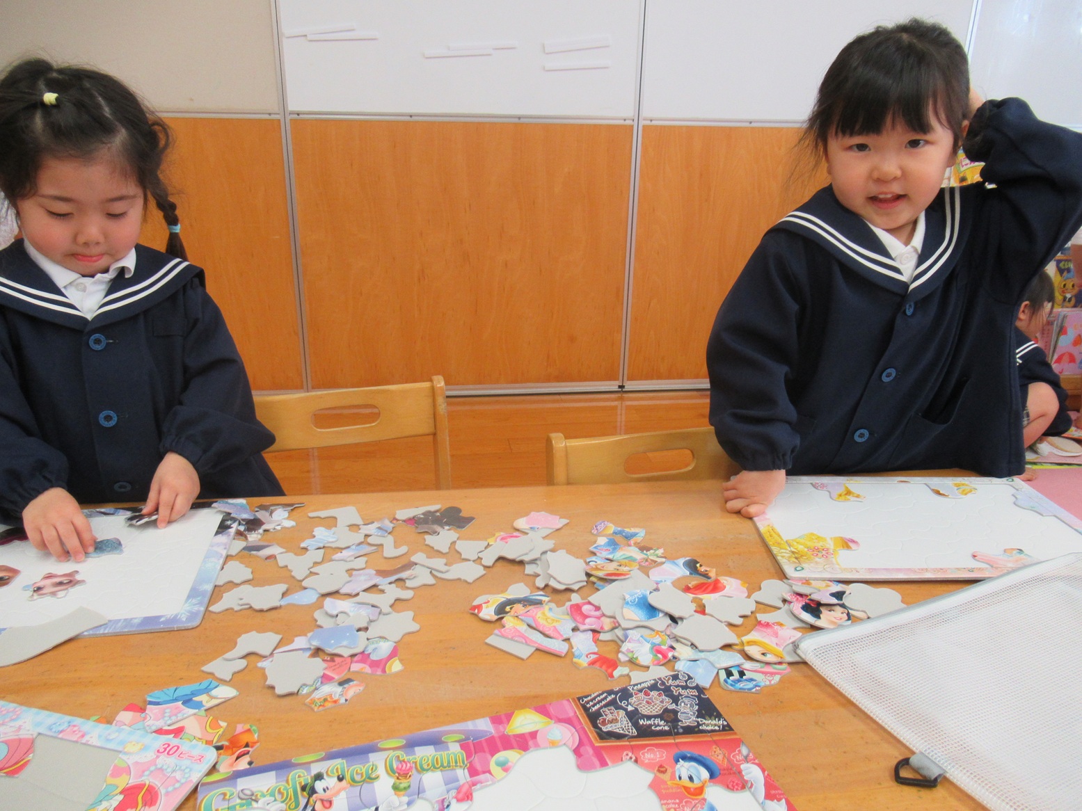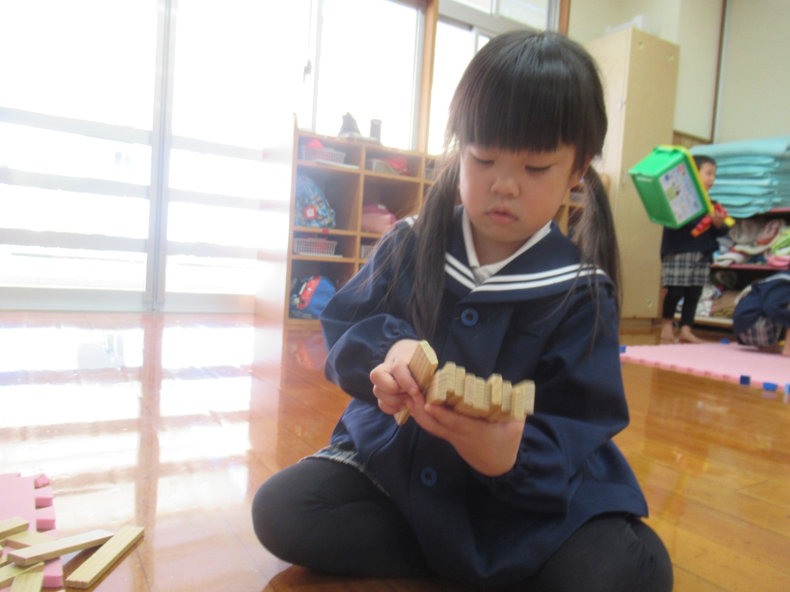 お部屋遊びでは協力して積み木を積み上げたり、ピースの数が多いパズルに取り組んだりと、遊び方もレベルアップしています!