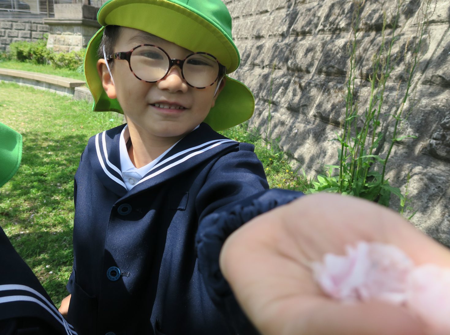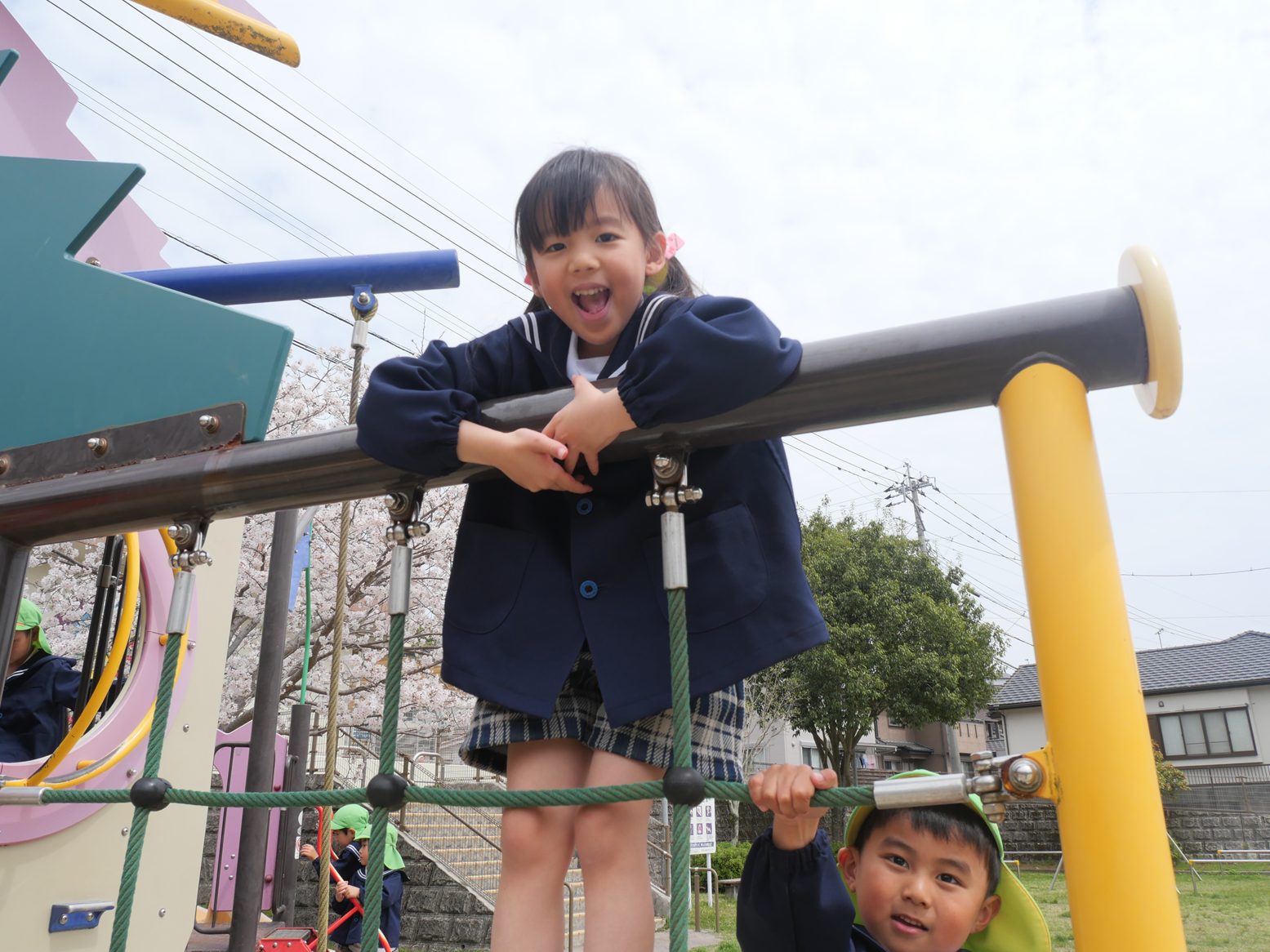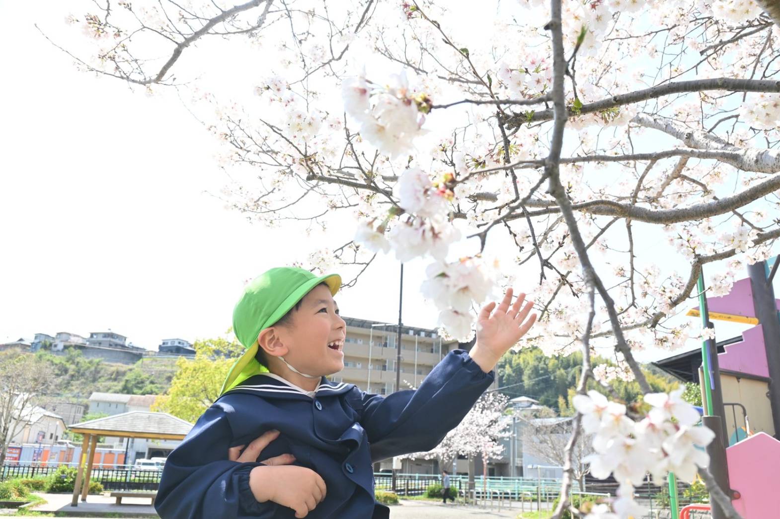 進級し、さっそく公園におでかけをしたきりん組さん。 桜も満開で、「きれいだね。」、「みて花びら!」と会話を弾ませる子どもたち。 季節の花に触れ、お花見を楽しみました。 遊具では、「先生、見てて!」、とスイスイ上り、元気に遊び回る姿が見られました。 たくさん体を動かし満足気な子どもたちです! 保育園での生活も最後の一年となりました。 きりん組さんみんなでたくさん楽しい思い出を作っていきたいと思います。