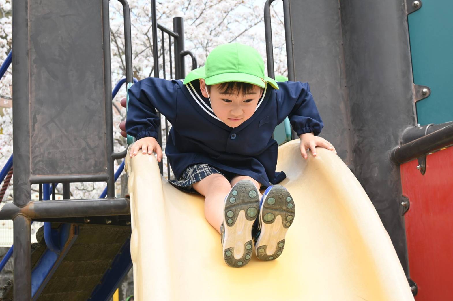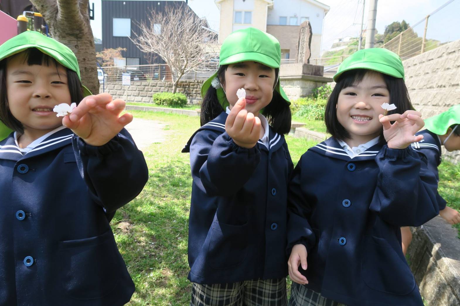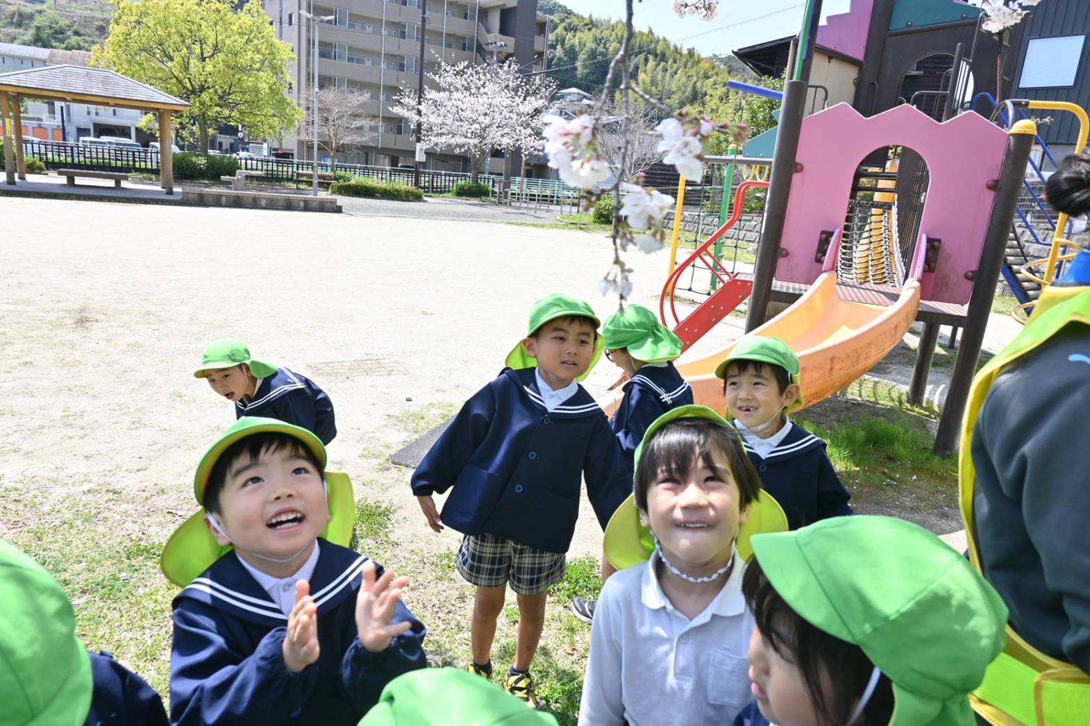 進級し、さっそく公園におでかけをしたきりん組さん。 桜も満開で、「きれいだね。」、「みて花びら!」と会話を弾ませる子どもたち。 季節の花に触れ、お花見を楽しみました。 遊具では、「先生、見てて!」、とスイスイ上り、元気に遊び回る姿が見られました。 たくさん体を動かし満足気な子どもたちです! 保育園での生活も最後の一年となりました。 きりん組さんみんなでたくさん楽しい思い出を作っていきたいと思います。