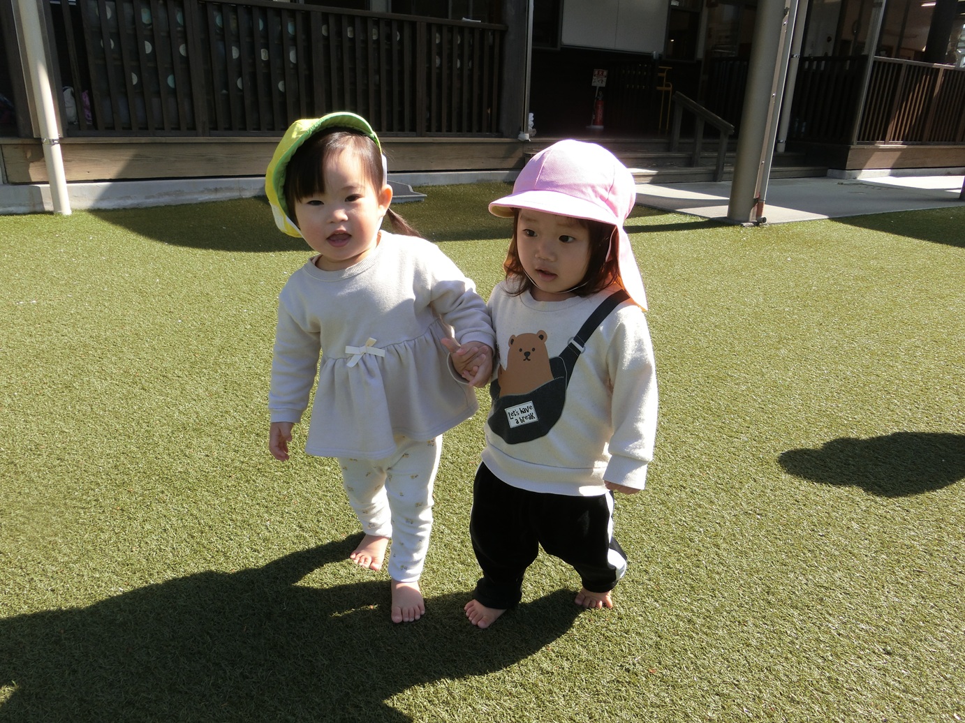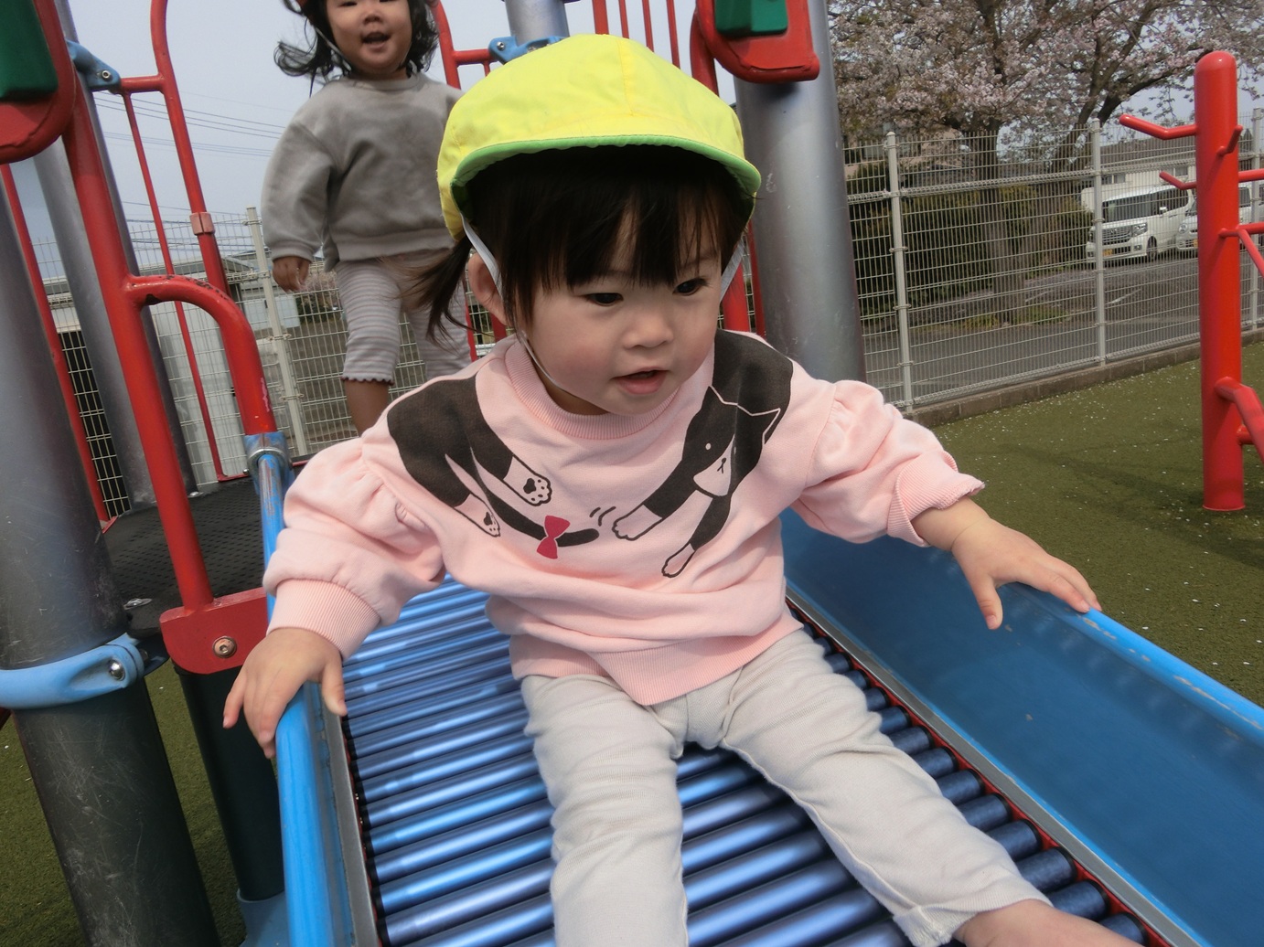 4月2日の入園説明会も終わり3日から新しい友だちも増えてこあら組さんがスタートしました! 男の子4名、女の子6名の計10名とにぎやかなクラスになりました。 少しずつ園生活にも慣れており、外に出ると滑り台を滑ったり、芝生の上をゴロゴロしたりする子どもたち。 滑り台の上に上ると「せんせい!」、「ヤッホー!」ととっても元気いっぱいな子どもたちです。 まだ時々涙を流す姿も見られますが、子どもたちのペースで保育園での楽しみを感じてくれたらと思います♫