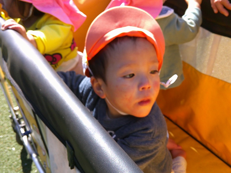 少しずつ園生活に慣れてきたひよこ組さん。 天気の良い日はカートに乗って園庭をお散歩しています! だんだんと行動範囲が広がり、滑り台につかまり立ちをしたり、 芝生を思い切り触ったりして、それぞれが外気浴を楽しんでいます♪ お兄さん、お姉さんクラスの子どもたちも「赤ちゃんかわいいね~!」と近寄ってきて、 ひよこ組さんも嬉しそうな表情でした!