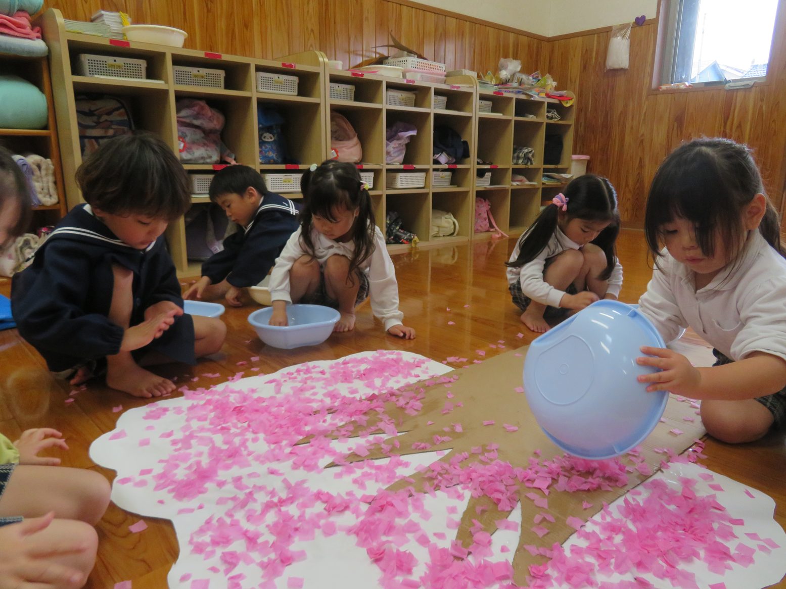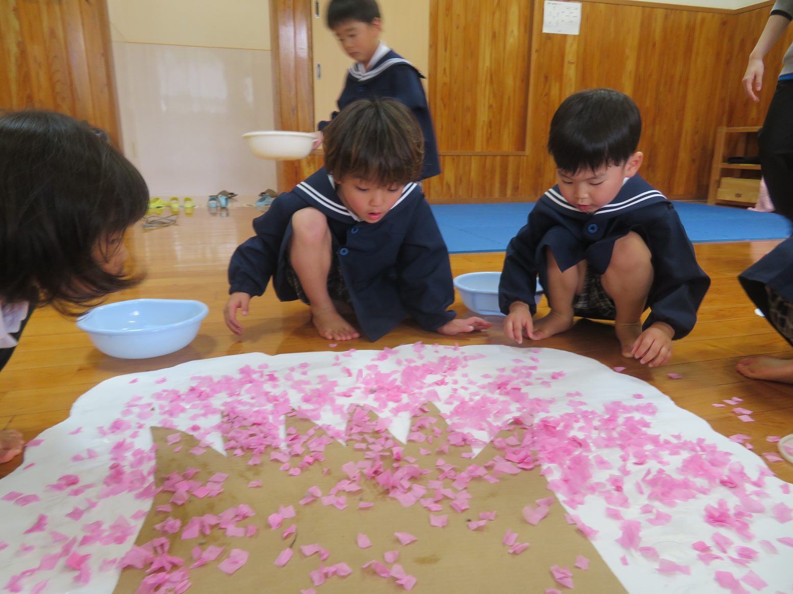 ピンクの花紙をパラパラ撒くと「わー!」と歓声があがります。