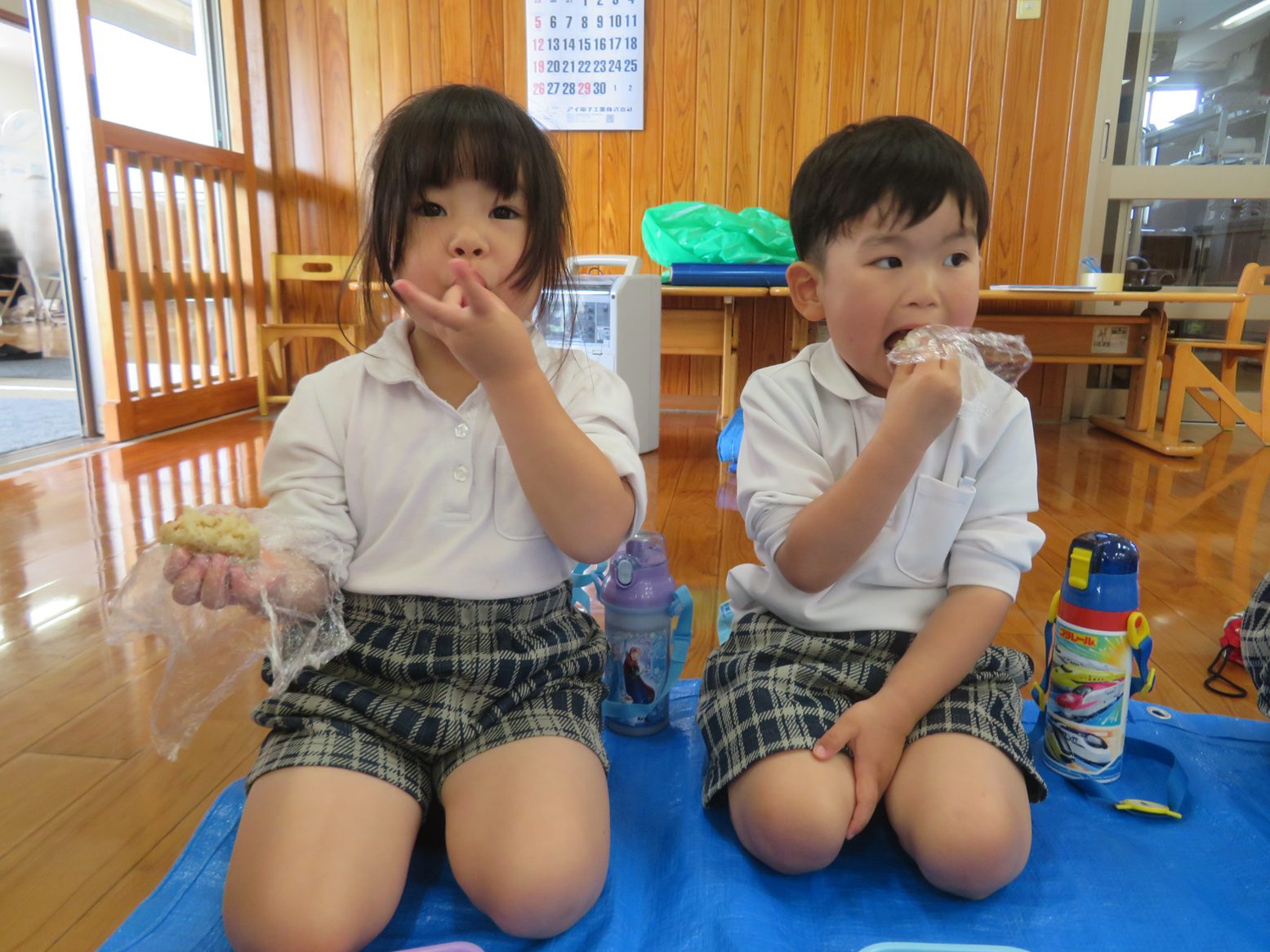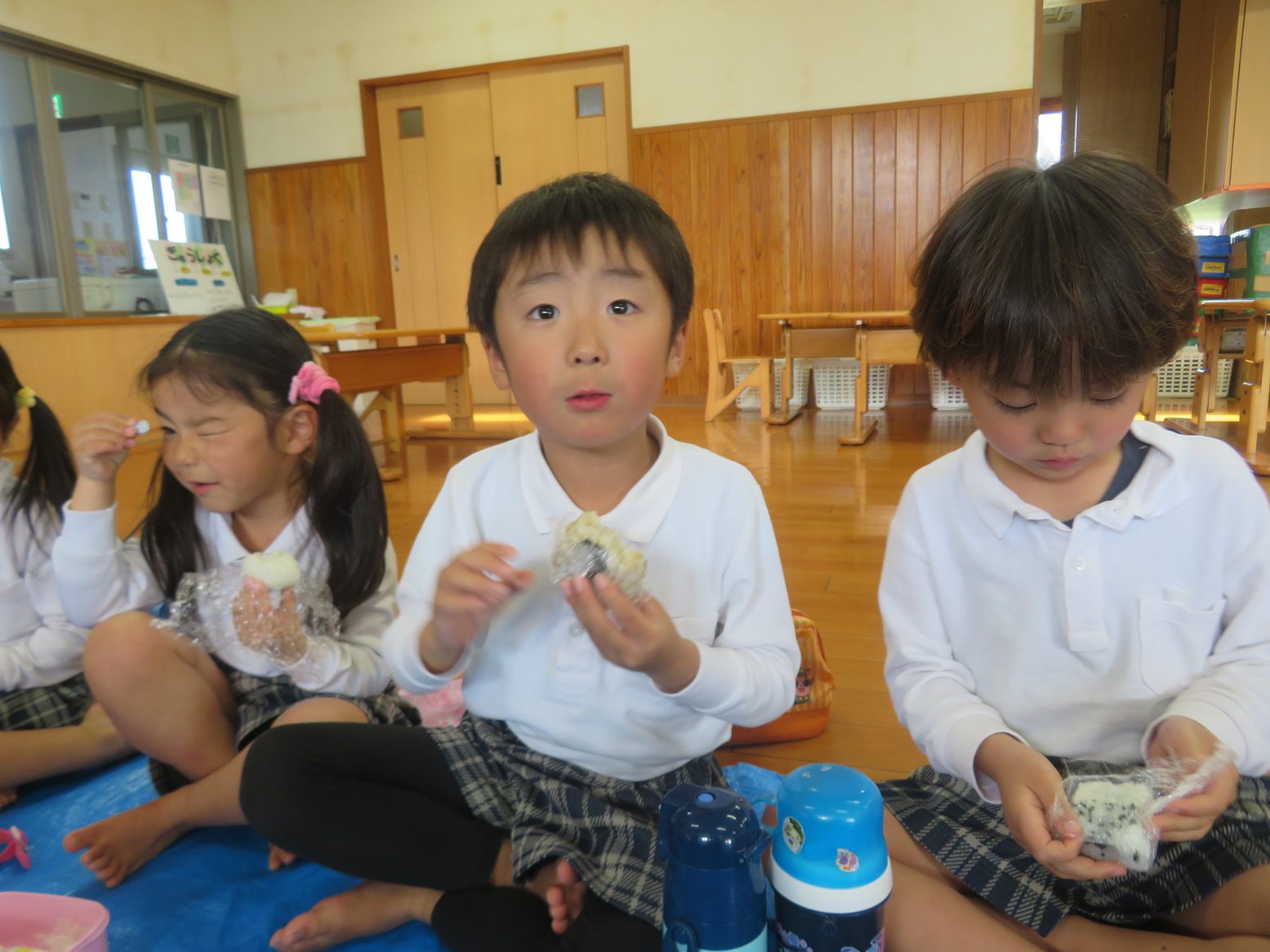 花紙でいっぱい遊んだ後は「もう、お腹ペコペコ!」と待ちに待ったおむすびの時間!