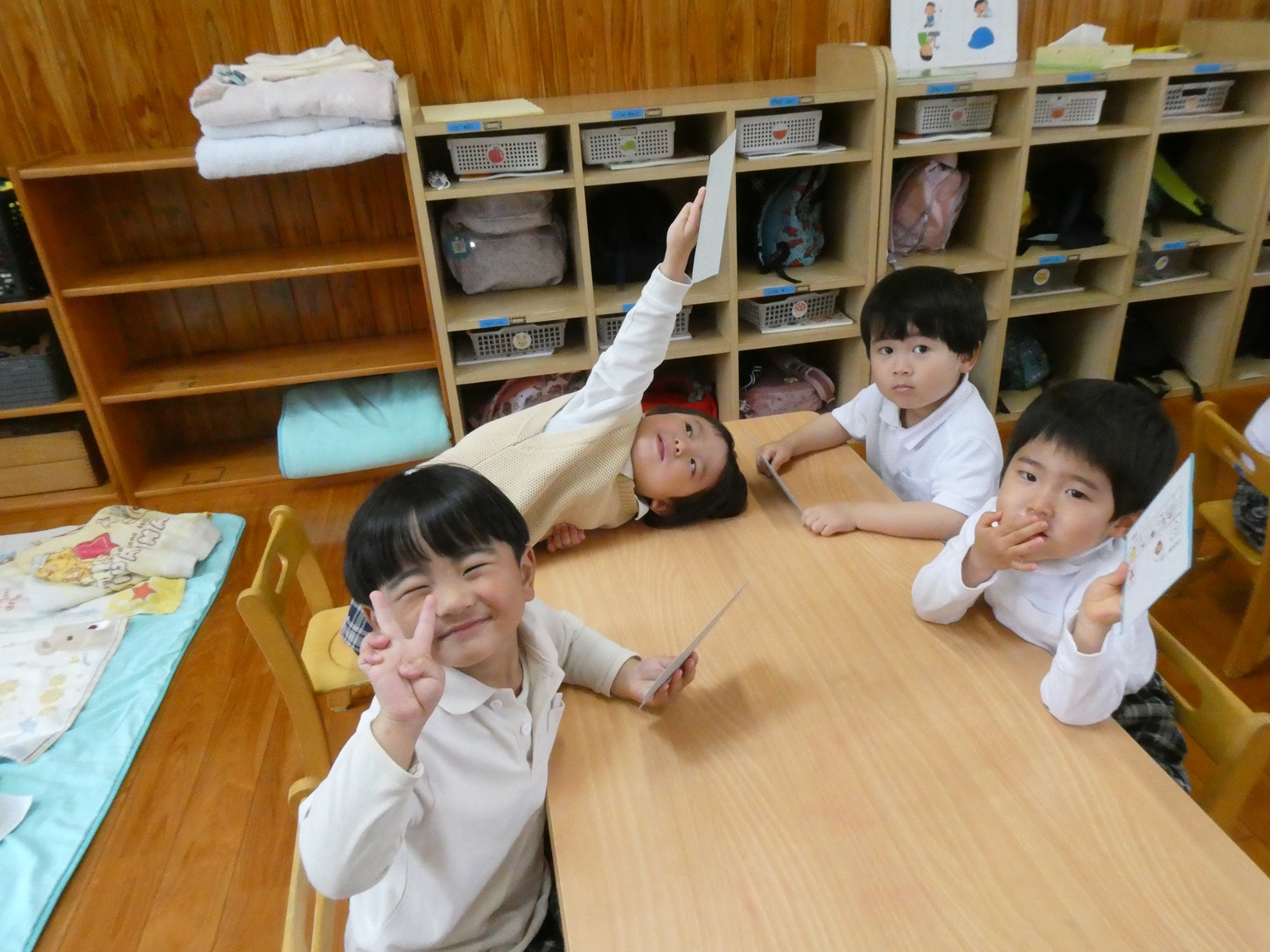 今月は保育園の中をみんなで手を繋いで探検しながらスタンプラリーをしました☆